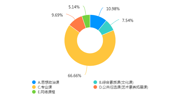 满意度最高和最低的课程类别。66.66%的学生对专业课程满意度最高,40.78%的学生对网络课程满意度最低,说明线上课程提升空间仍然很大,学校仍需注重信息化条件的教学改革,进一步激励教师建设高质量精品在线开放课程。