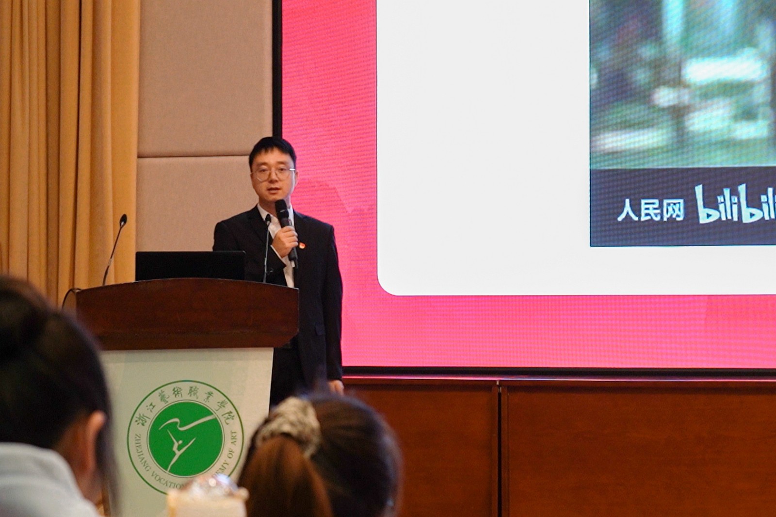 “浙艺青年说,今天我来说!增强中华文明传播力、影响力,坚守中华文化立场,讲好中国故事、传播好中国声音,展现可信、可爱、可敬的中国形象,推动中华文化更好的走向世界……”11月23日,由校党委宣传部、马克思主义学院、校团委联合主办的“浙艺青年说”党的二十大精神专题宣讲会在图信中心报告厅举行。党委书记薛亮,党委委员、副院长沈军甫,党委委员、宣传部(统战部)部长马向东,党委委员、组织部(人才办)部长刘杨,相关职能部门和各二级学院党总支负责人、党校培训班师生听取宣讲。