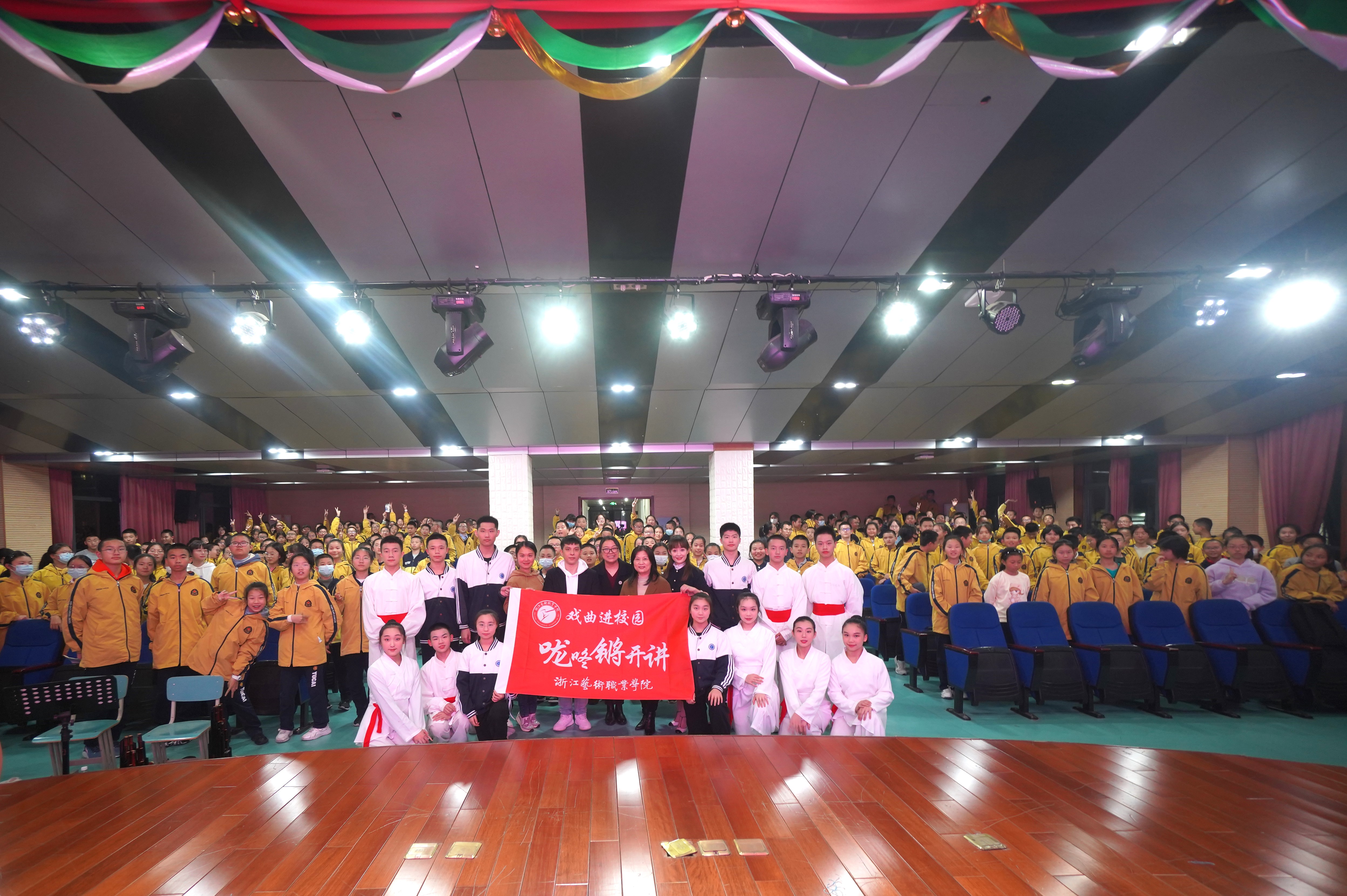 11月下旬,浙江艺术职业学院戏曲学院联合杭州锦绣育才教育集团、临平区文化馆、拱墅区戏剧家协会、临平区实验小学等单位,开展了8场“传统文化校园行 美育精神共传承”戏曲进校园系列活动,将戏曲带进锦绣中学、临平区实验小学、育才中学、京杭小学等中小学,以剧节目展演的形式引导学生体验传统文化,以沉浸式体验活动来传播戏曲知识,培养学生对优秀传统文化的兴趣,增强学生戏曲艺术素养和审美素养,进行戏曲美育教育。