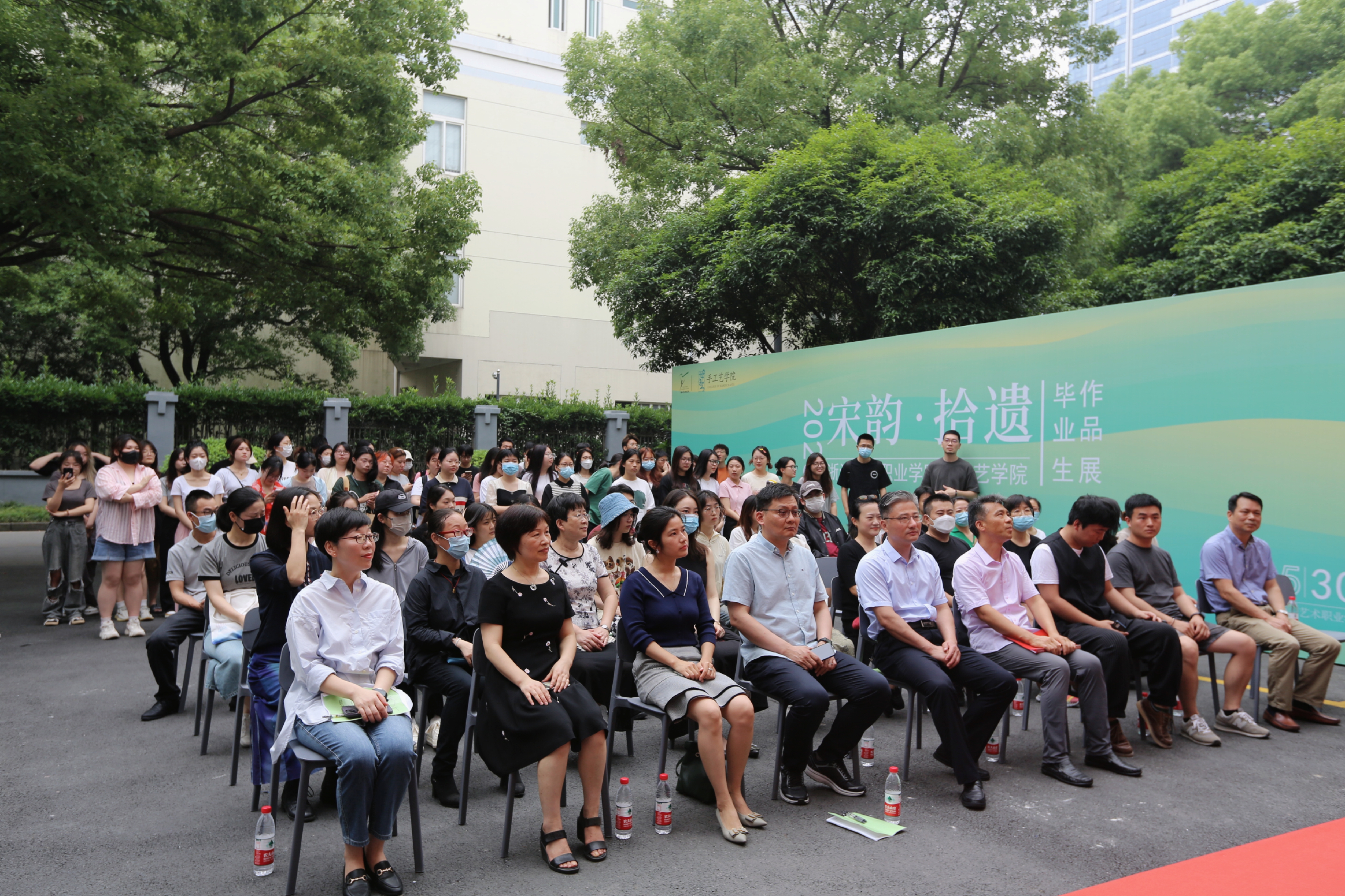 5月30日,“宋韵•拾遗”手工艺学院2023届毕业生作品展暨“巧艺传承 匠心筑梦”第五届“浙艺手艺”节在立业园开幕。浙江艺术职业学院党委书记薛亮,党委委员、副院长沈军甫,浙江励行文化科技有限公司修复部经理张哲,浙江省创意设计协会副秘书长范倩怡,江苏华艺时装集团股份有限公司人力资源部经理韩加梅,招聘主管薛棉尹,学校相关部门负责人以及手工艺学院师生参加开幕式。