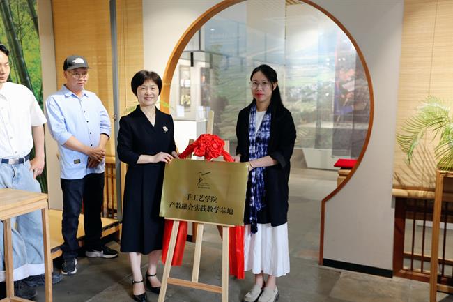 手工艺学院与东梨民艺博物馆进行了产教融合实践教学基地合作签约与授牌仪式,双方将共同为传承非遗培养更多专业人才,使木活字印刷术在保护中发展、在发展中保护。