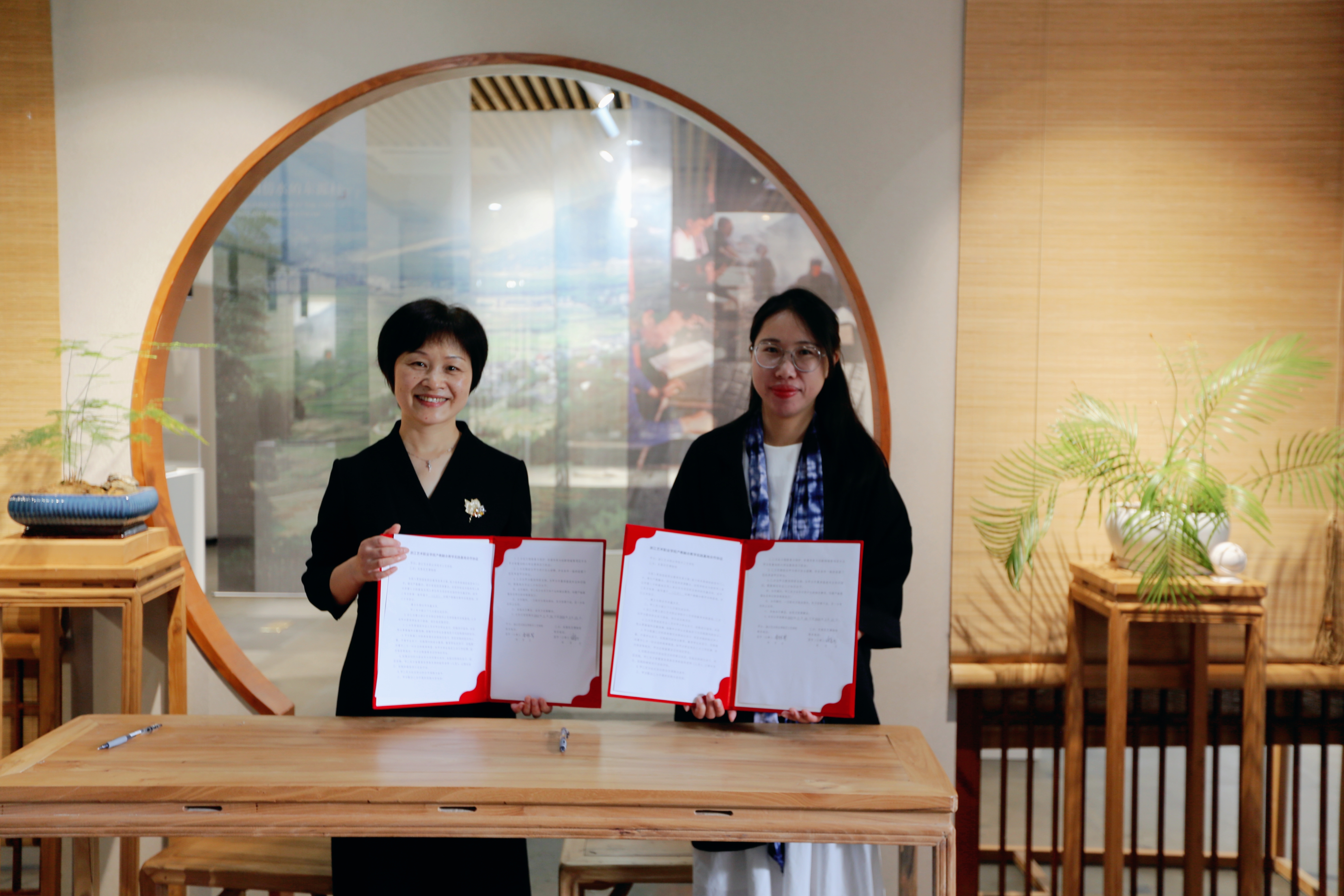 手工艺学院党总支书记、副院长金银琴表示,手工艺学院一直致力于传统手工艺保护传承和传播工作,努力通过展览的方式架起传统技艺与观众之间沟通的桥梁。瑞安东源村木活字印刷技艺、东梨民艺博物馆的文创产品研发与手工艺学院文物修复与保护专业人才培养理念高度契合,希望本次展览的举办与签约能为下一步双方深入合作打下深厚的基础,共同守护中国活字印刷术的文化史,一起探索非遗保护与创新人才的培养。