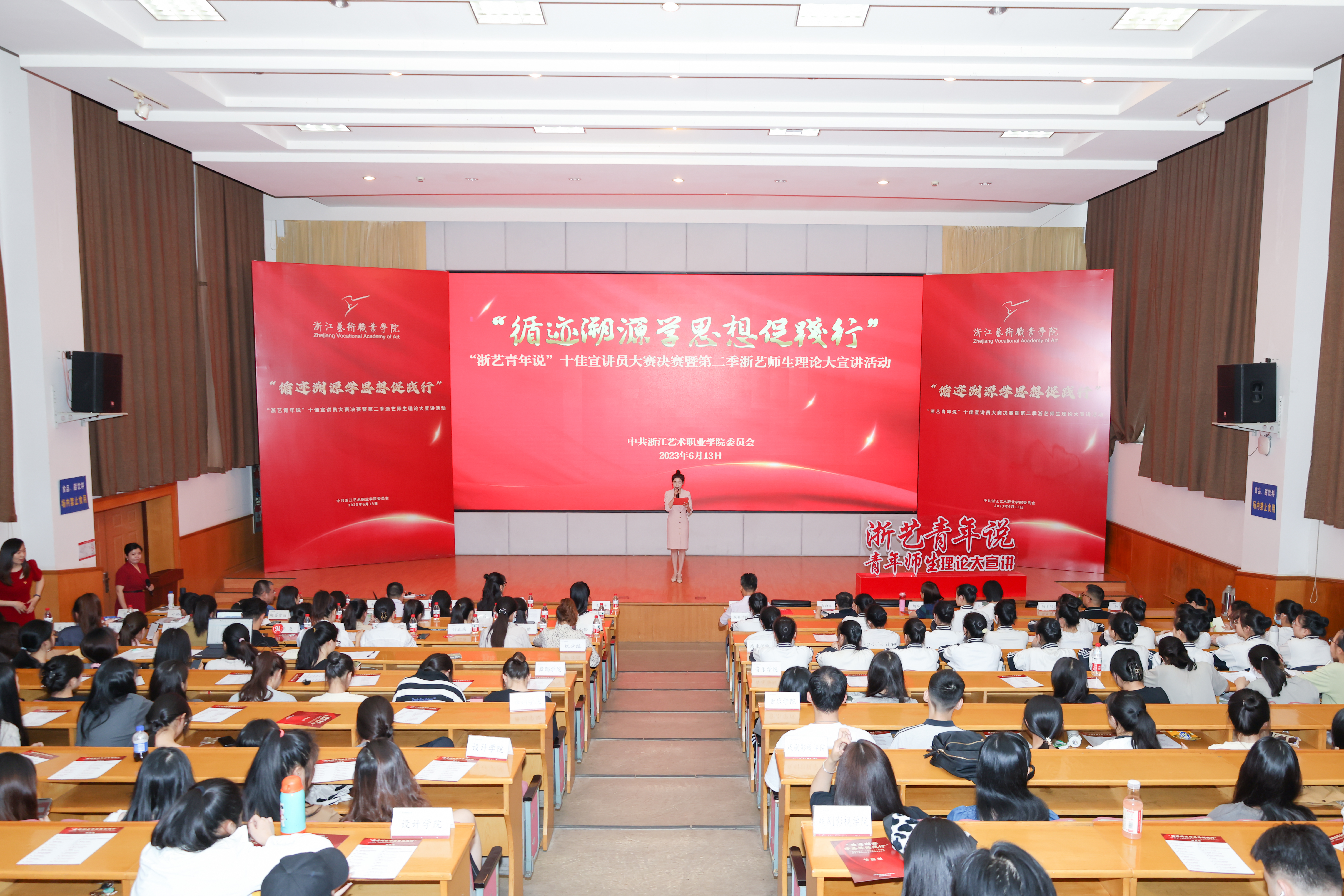 6月13日晚,“循迹溯源学思想促践行”“浙艺青年说”十佳宣讲员大赛决赛暨第二季浙艺师生理论大宣讲活动在图信中心报告厅举行。校党委委员、副院长沈军甫,党委委员、副院长支涛,党委委员、宣传部(统战部)部长马向东,相关职能部门和各二级学院负责人出席并担任评委。各二级学院学生代表到场听取宣讲。