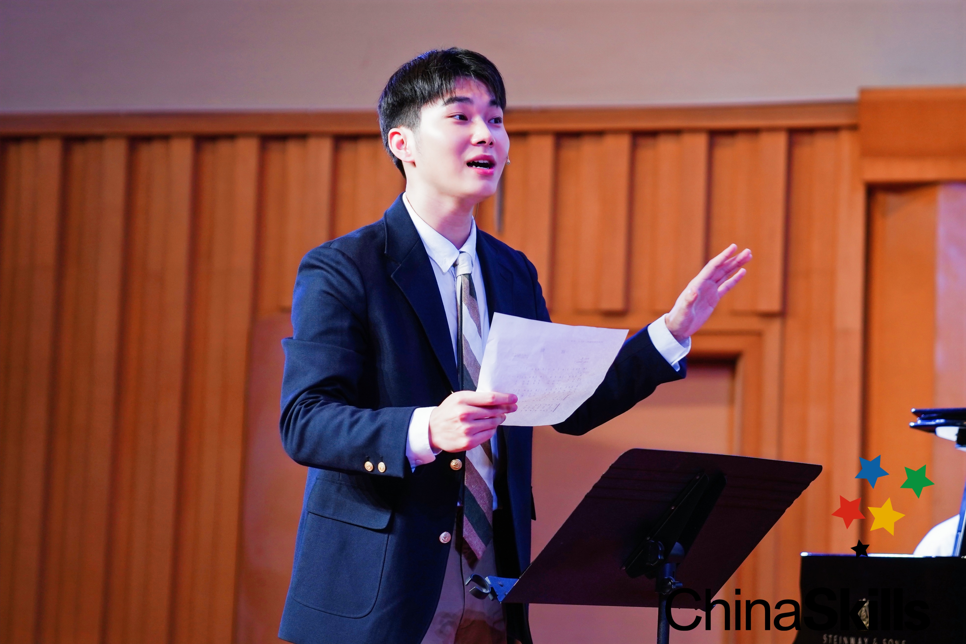 在视唱和艺术素养环节中,选手们要完成新谱视唱、问答题和听辨题。选手们在回答问题中对答如流,展示出对音乐理论基础知识、中国音乐史、西方音乐史和中国民族民间音乐常识方面的知识储备。在音乐编创环节中,选手们化身“小老师”,在台上自信引导合唱演员,带动不同音部,一起配合完成作品的演绎。选手们有“指挥家”的范儿,手势、动作到位,作品的阐述详细,展示了出色的综合能力。