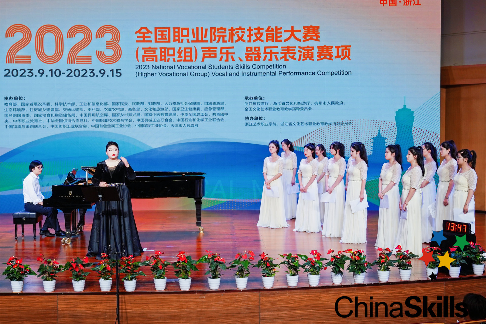 9月10日至15日,2023年全国职业院校技能大赛(高职组)声乐、器乐表演赛项在浙江艺术职业学院展开精彩角逐。来自29个省(市、自治区)的职业院校的53支参赛队伍,共159名选手在浙艺同台竞技,展示青春风采。