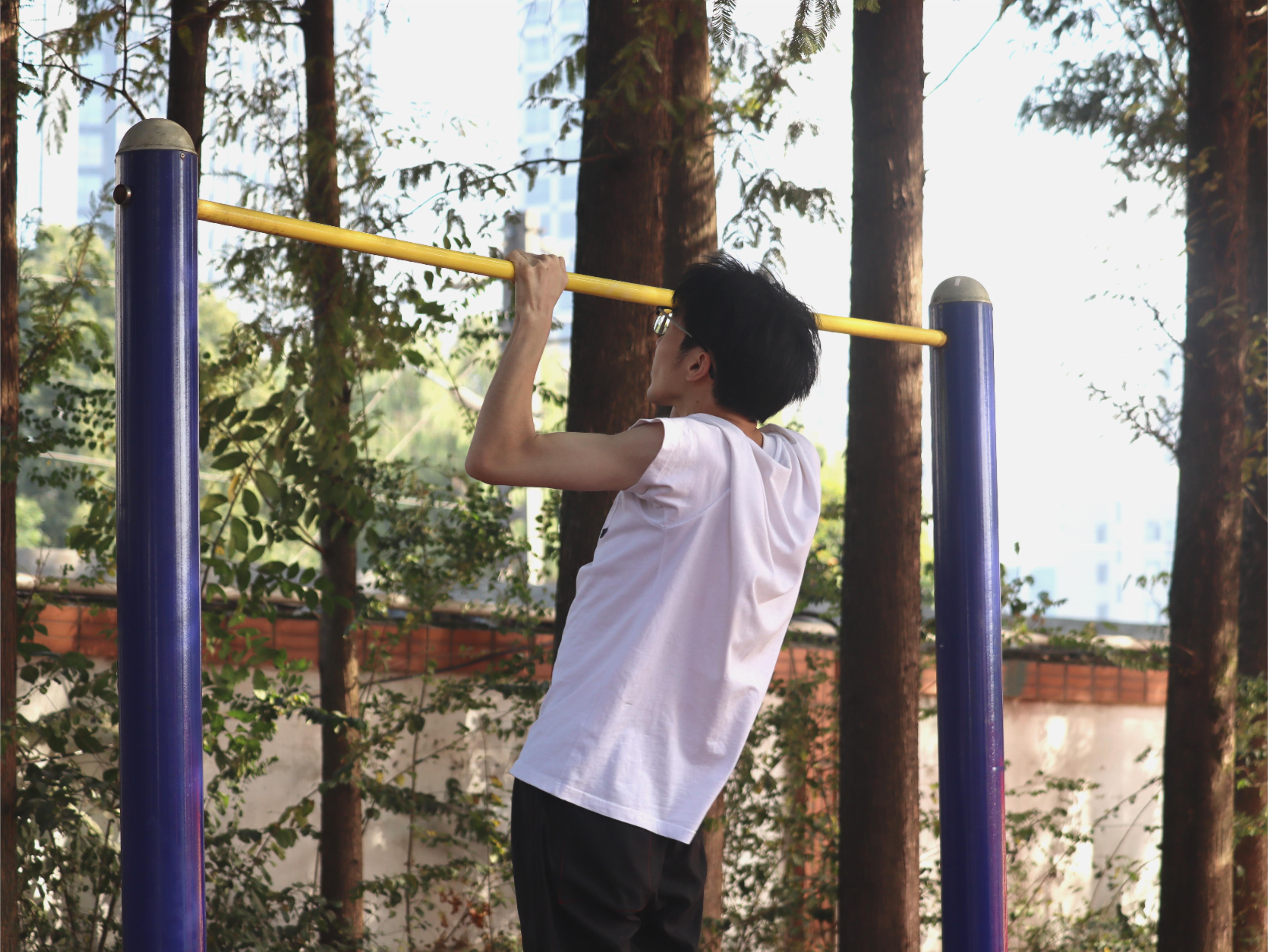 汗水洒在单杠上