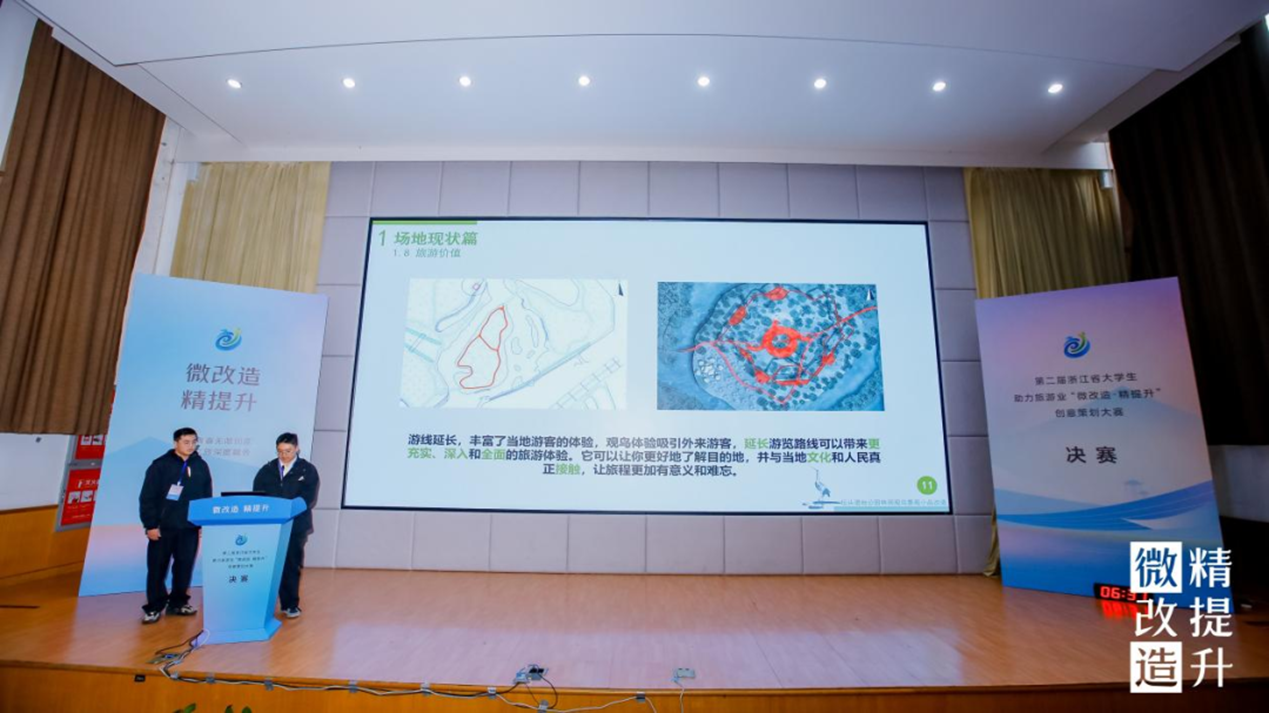 作为浙江省大学生助力旅游业“微改造 精提升”创意设计大赛的承办单位,我校探索以赛事办实事,以项目任务驱动教学,使教学和社会需求进一步接轨,提升办学质量,共同推动旅游业高质量发展,奏响美美与共的乡村乐曲,绘就共同富裕的美好画卷。
