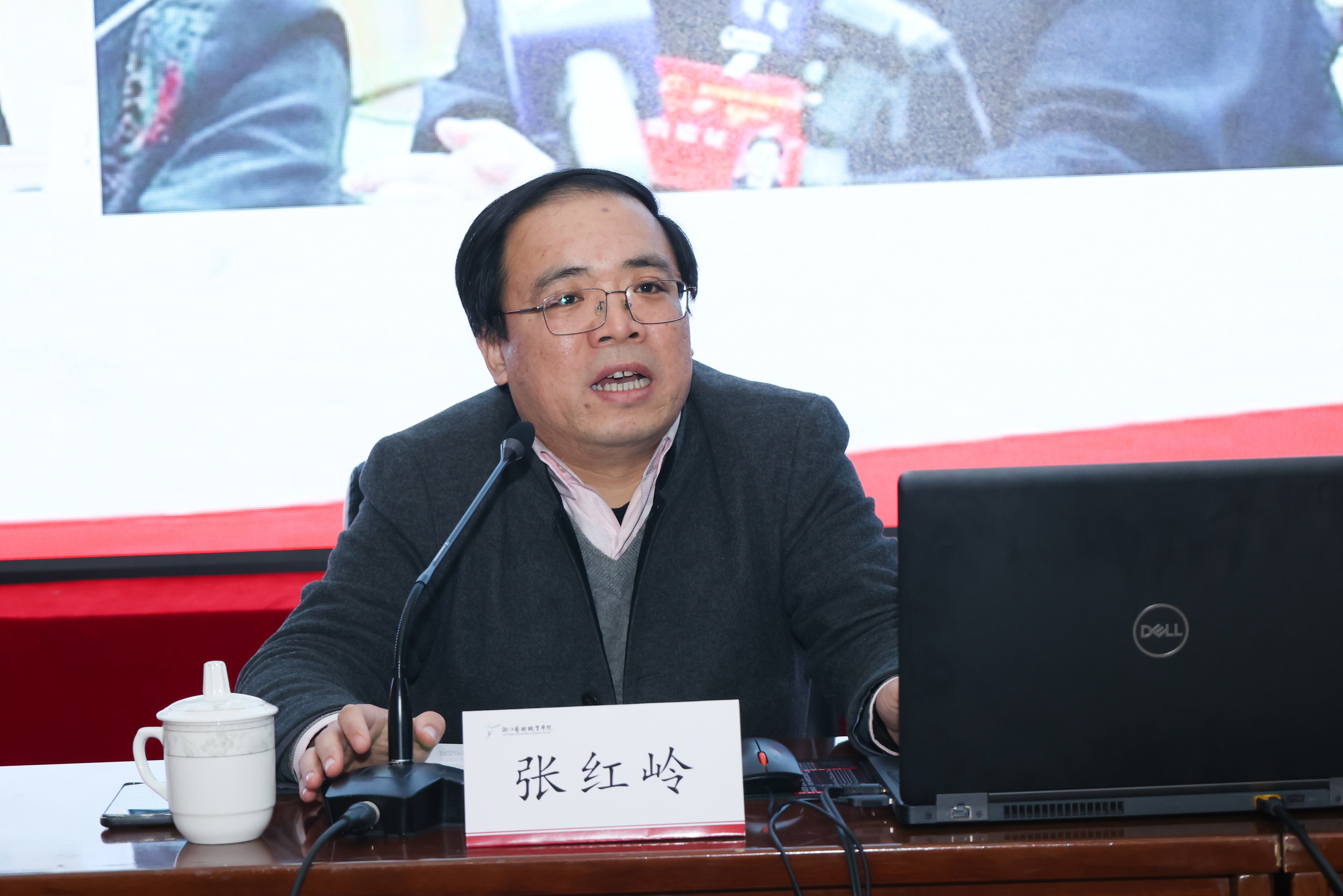 张红岭从意识形态工作的重要性、意识形态工作面临的挑战、新时代意识形态工作的重点内容和如何提升意识形态工作的能力四个方面,结合案例、典故等生动讲解了意识形态的定义和功能,阐述了新时代意识形态工作要更好发挥弘扬主旋律、传播正能量,继承和弘扬中华优秀传统文化,培育和践行社会主义核心价值观,推动社会主义文艺繁荣发展,讲好中国故事,传播中国声音,提升国际传播力,争夺国际话语权,倡导“和而不同、包容互鉴”的世界文明发展观,增强中国对外的传播力、影响力、塑造力。