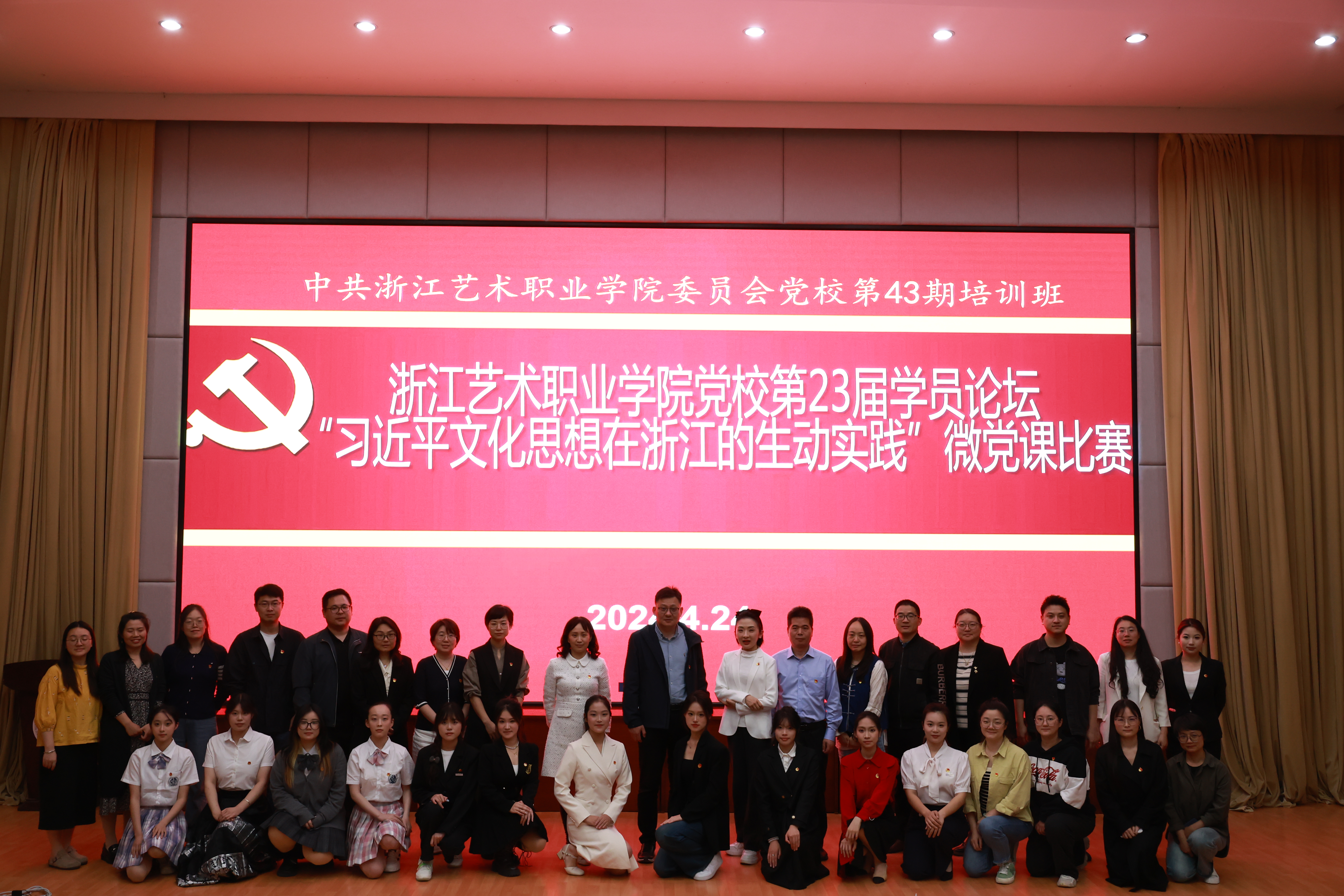 为深入学习贯彻习近平文化思想,学懂弄通做实习近平总书记对浙江工作以及文化广电和旅游系统特别是文旅融合深度发展的重要指示批示精神,4月24日晚,浙江艺术职业学院43期党校第23届学员论坛暨“习近平文化思想在浙江的生动实践”主题微党课比赛在图信中心报告厅举行。党委委员、组织部部长、人才办主任、党校副校长周应中出席,组织部、宣传部、各教学单位党总支(直属党支部)负责人、党校任课教师、党校班主任、第43期党校学员共170余人参加并观摩比赛。