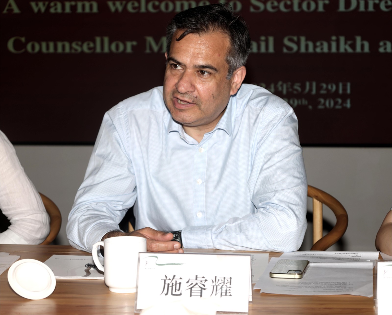 5月29日下午,英国驻上海总领事馆商业贸易部公使衔参赞施睿耀一行来访,校长、党委副书记施俊天会见来宾,党委委员、副校长刘秀峰及相关部门负责人陪同调研。