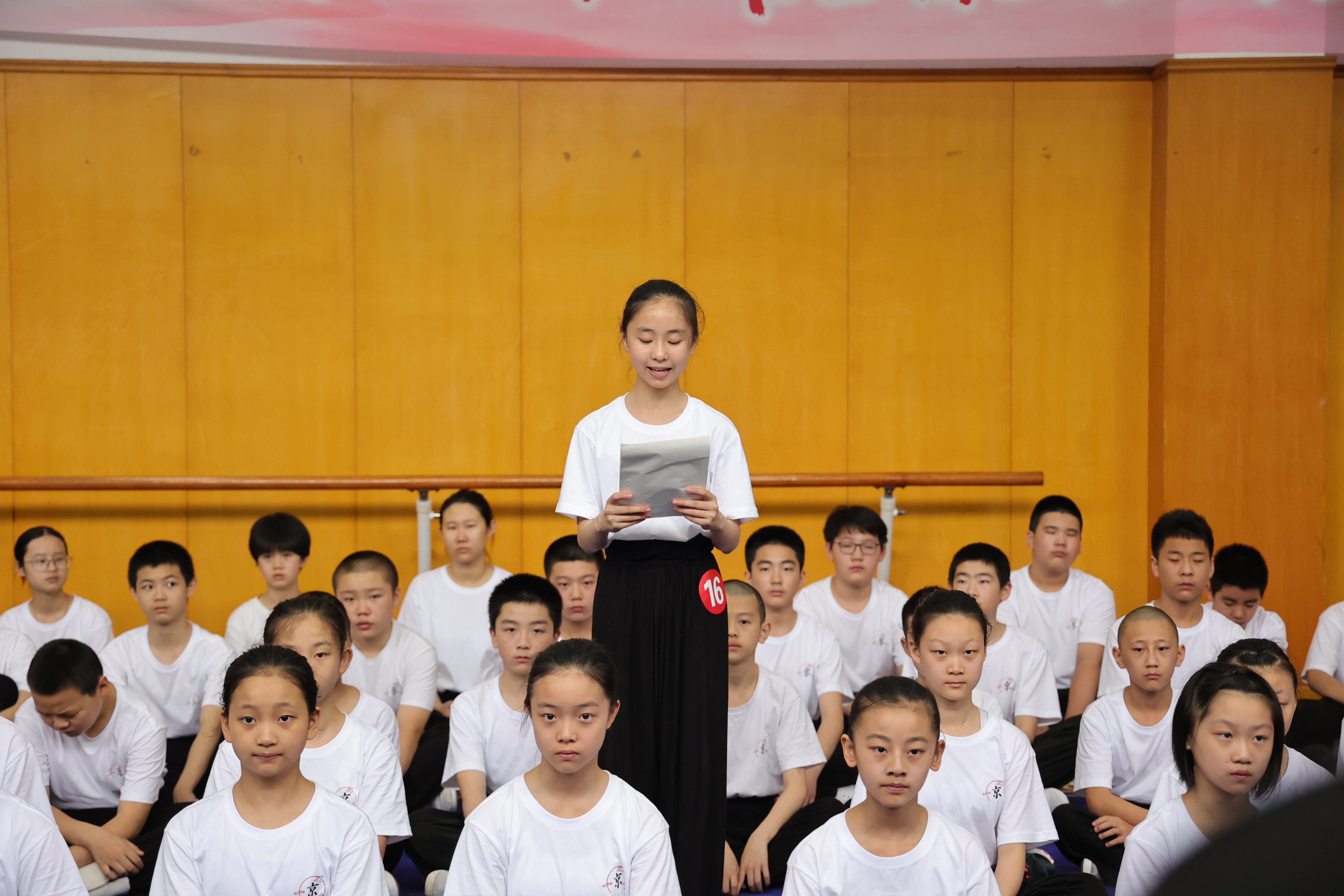 “同学们一同‘在中心花园做歌唱家’‘在练功房争分夺秒’,大家一年来团结奋进的画面让我感到特别温暖,也深受鼓舞。”作为班级代表、京剧班学生陈泺妃分享了成为“准京剧演员”近一年来的所学所感:从一开始的京剧小白,到现在“四功五法”渐渐入门,离不开老师们的悉心教导以及师兄师姐们的榜样力量。