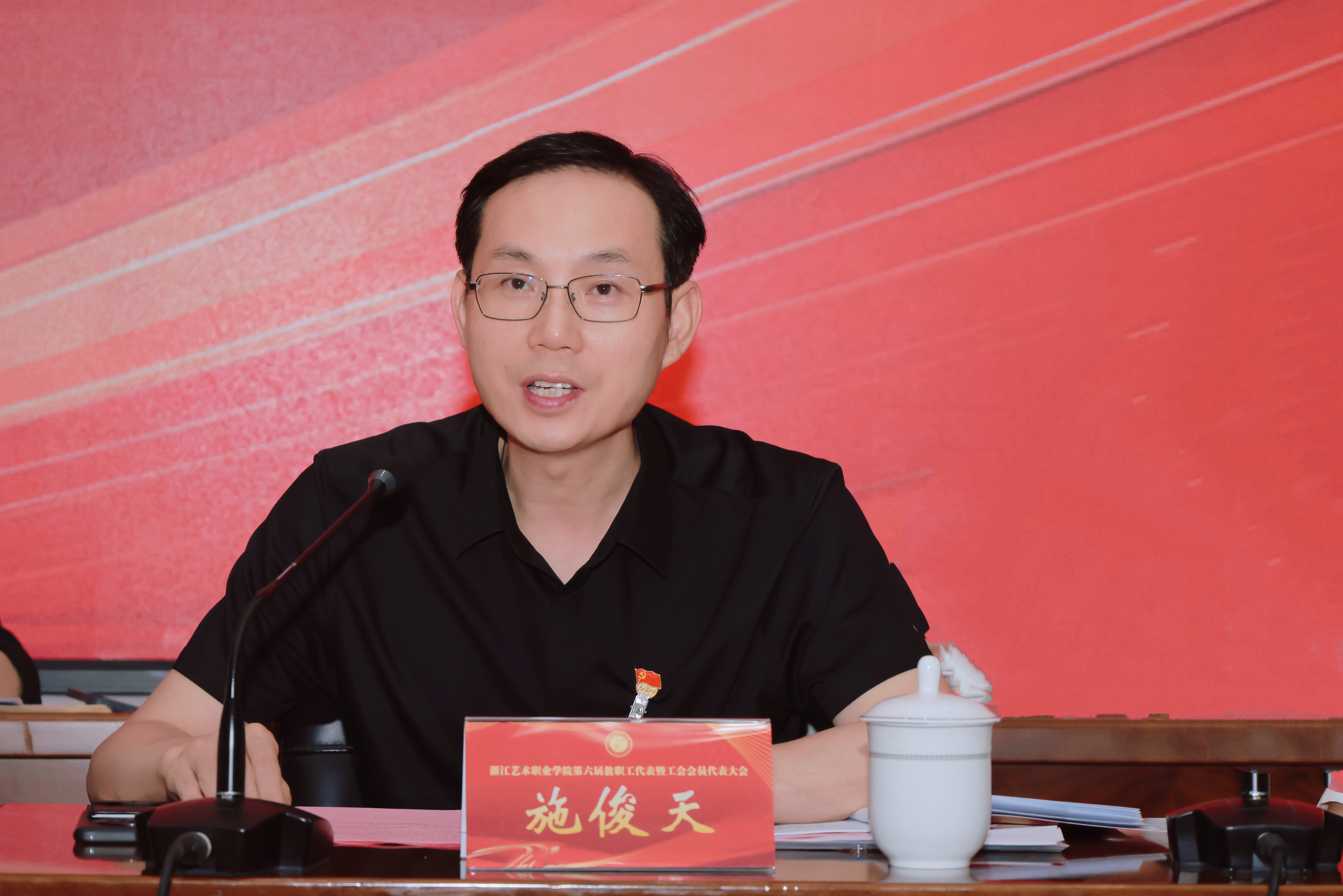 团结凝聚力量,奋斗铸就伟业。施俊天在闭幕词中指出,这是一次民主务实、凝心聚力、团结奋进的大会。各位代表积极履职尽责,围绕学校建设发展提出了很多宝贵的意见和建议,体现了代表们对学校建设发展的重视和关心。全体浙艺人要以更坚定的决心、更务实的作风、更扎实的工作,全面落实学校工作部署,持续推动学校事业高质量发展。一是始终坚持党建引领,凝聚发展共识。全校上下要始终坚持党对学校工作的全面领导,统筹推进党的各项建设,以高质量党建引领学校事业高质量发展。按照党中央和上级党组织的决策部署,坚决贯彻落实未来发展战略和年度重点工作,以奋发有为的姿态推进中国特色高水平职业学校建设。二是始终坚持民主管理,深化改革创新。全校上下要进一步统一思想、锐意进取,瞄准目标、保持定力,深化改革、破解难题,努力为学校建设发展出谋划策、贡献力量。教代会、工代会要提升民主管理和监督实效,激发广大教职工参与民主管理、民主决策、民主监督,努力开创学校各项事业发展新局面。三是始终坚持为民情怀,落实惠民举措。全校上下要坚持为教职员工谋幸福、谋发展,统筹做好事业发展和民生保障,不断增强教职工的获得感、幸福感和安全感。各级工会组织不断强化宗旨意识,厚植为民情怀,把握好新时代群众工作的规律、方法和节奏,切实代表好、维护好、保障好教职员工的利益。