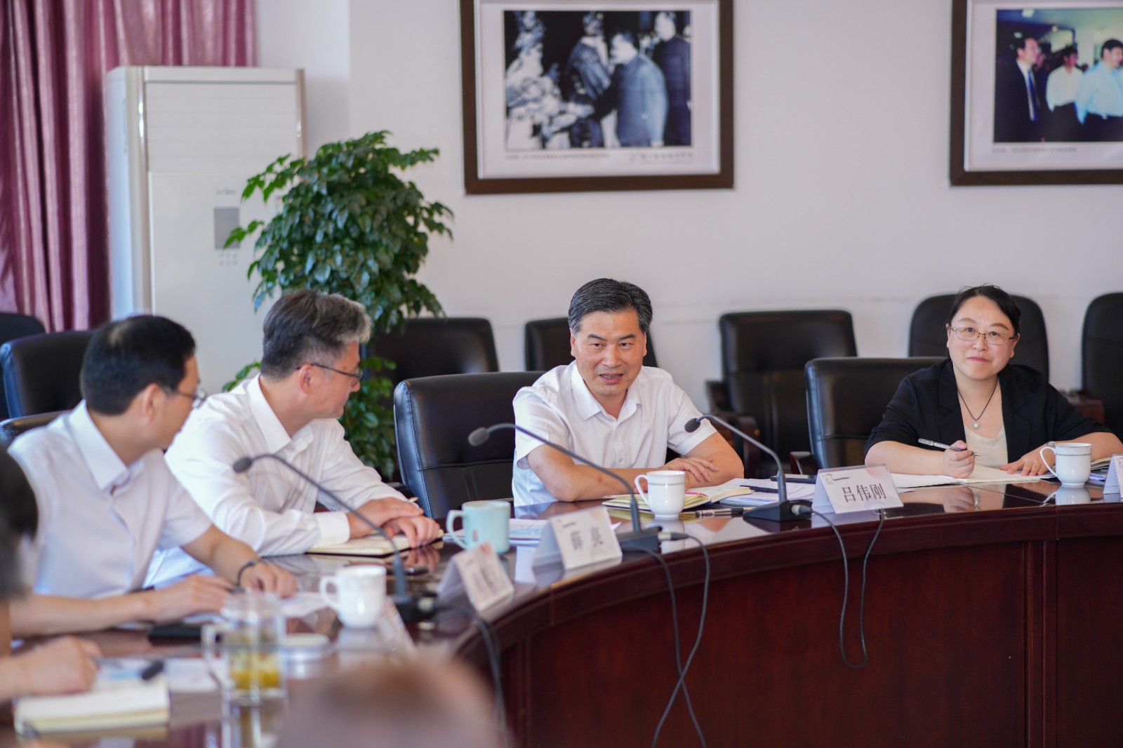 6月18日,浙江省文化广电和旅游厅党组成员、副厅长吕伟刚在艺术处处长陈吉芬的陪同下来到我校调研走访,了解学校发展整体情况。