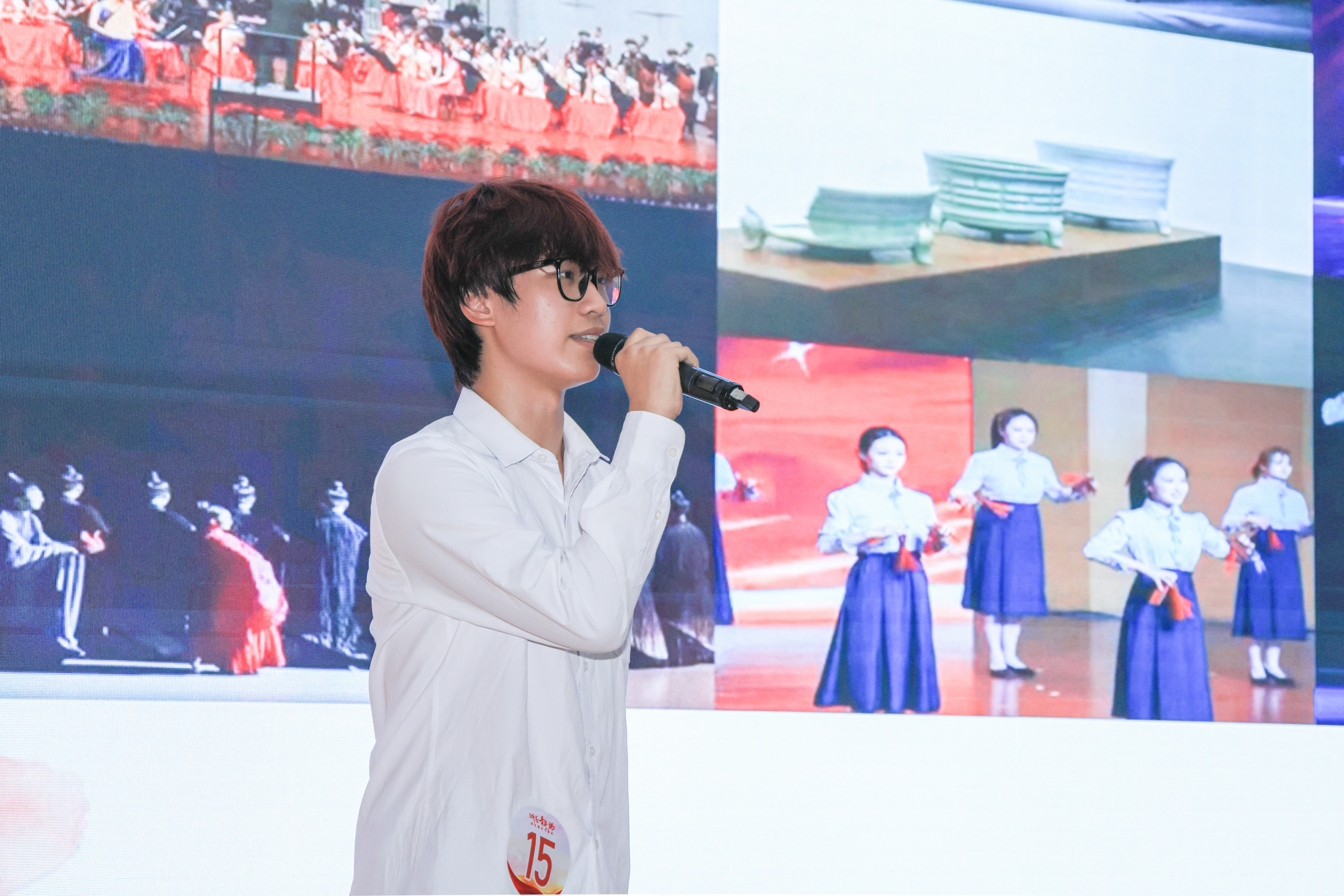 设计学院王雅婷通过设计创新和文化融合,介绍传统文化活化、应用和兴起的路径,讲述从“破圈” 到“出圈”、从“活起来”到“火出圈”中不断铸就中华文化新辉煌的故事;演艺与教育学院沙剑峰分享军旅经历,以徐振、蒋涛等校友为例,彰显浙艺学子在文化强军实践中绽放光彩的故事;戏曲学院教师柴轶佳通过讲述童年家庭熏陶和名师榜样的经历,激励戏曲人代代守护,助推戏曲事业新攀峰;手工艺学院冯菡通过展示杭州亚运会闭幕式,讲述杭州绿色、智能、文明的风采,彰显中国式现代化新篇章的浙江示范;音乐学院蒋陈竹讲述二胡和国乐的传承,强调传承与发扬民族文化的重要性。