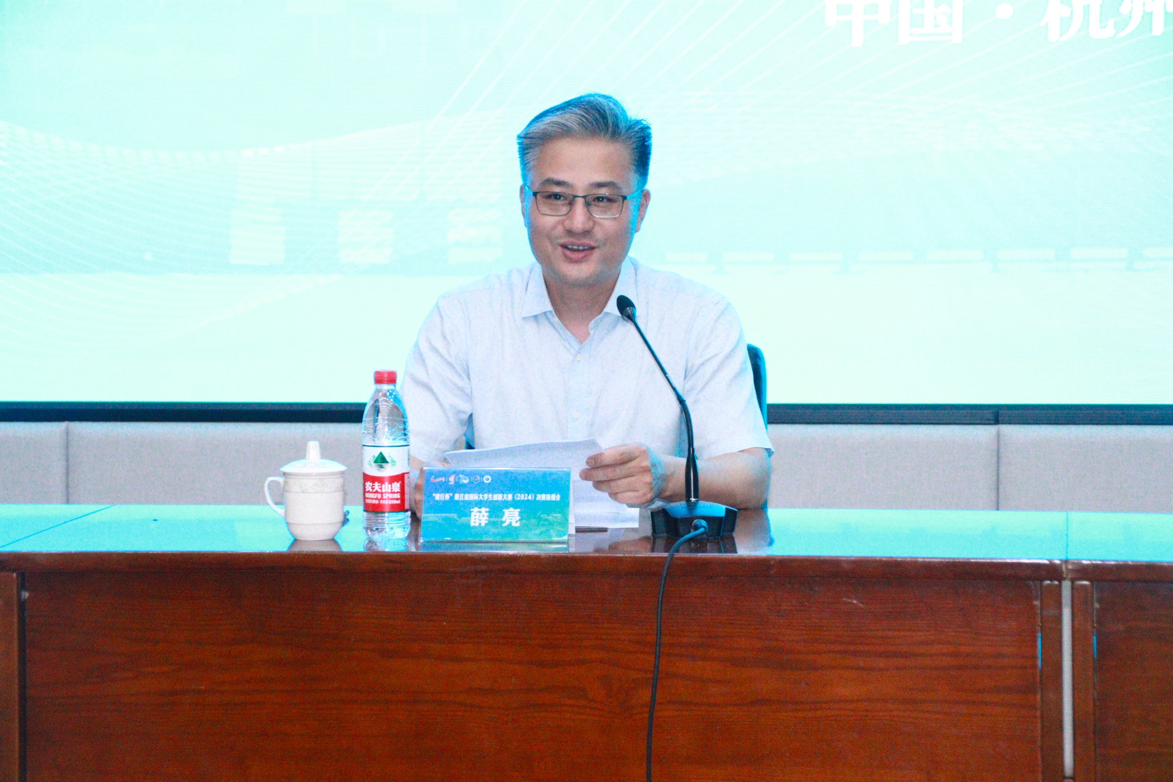 7月5日,由浙江省教育厅主办、浙江艺术职业学院承办的“建行杯”浙江省国际大学生创新大赛(2024)决赛培训会在我校图信中心报告厅召开。省教育厅高教处副处长廖波,校党委书记薛亮、副书记夏开堂出席会议,全省38所高校大赛主管部门负责人、主管、项目指导老师、项目负责人参会。