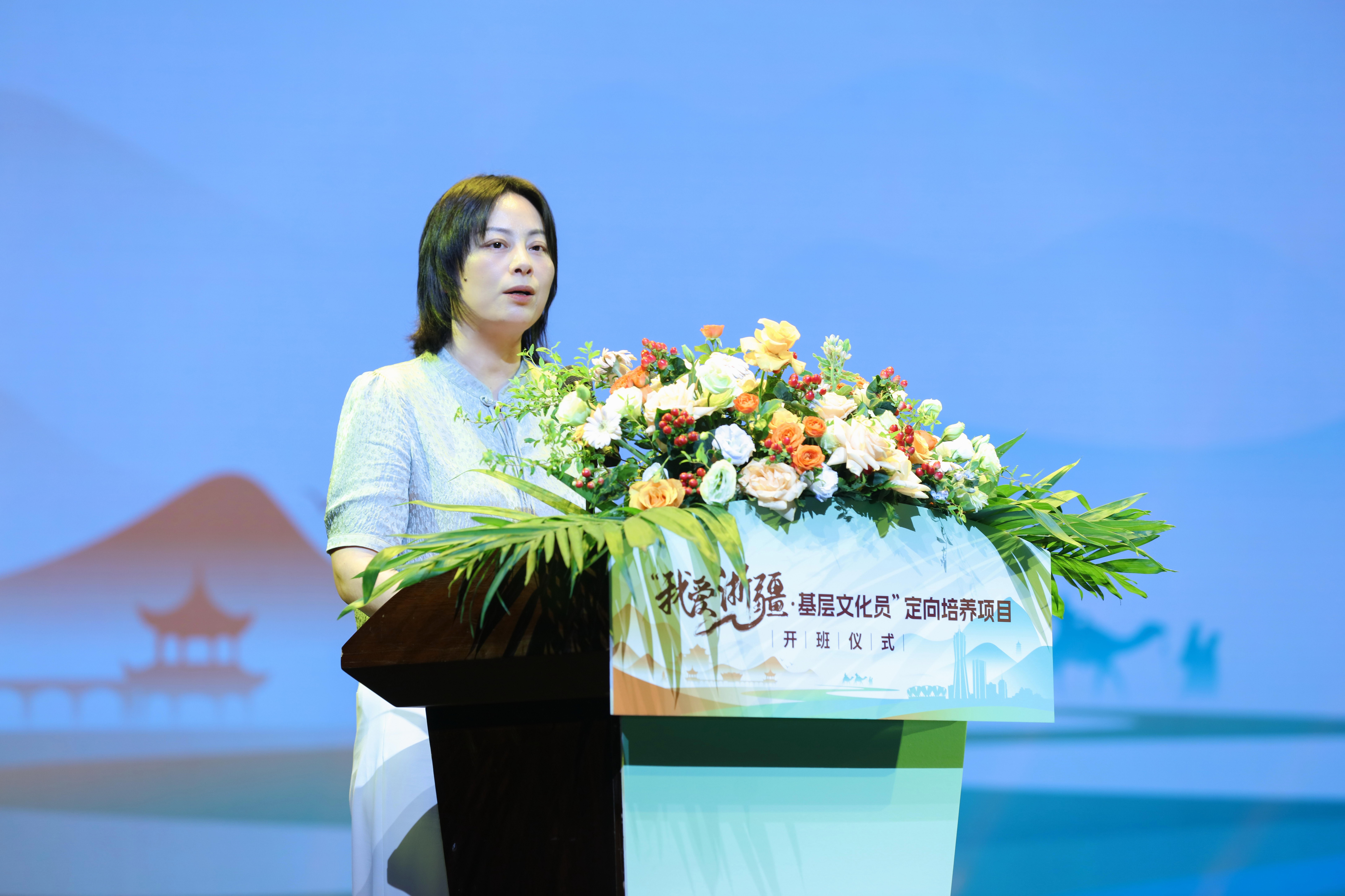 来颖杰代表浙江省委宣传部对项目的启动表示热烈祝贺。他指出,乡镇文化员定向培养是浙江省2017年推出的一项重大制度创新,旨在更好地建强基层公共文化服务人才队伍。多年的实践表明,浙江乡镇文化员定向培养已成为深化“千万工程”建设的重要抓手,也是丰富基层群众文化共富、精神富有的民生项目。浙江艺术职业学院作为培养单位,已招收七届共331名定向生,形成了许多可复制、可借鉴、可推广的经验做法。“我爱浙疆·基层文化员”项目由浙江艺术职业学院与新疆理工学院合作开展,恰逢其时,意义重大,有望为援疆再添新亮点、为文化润疆再创新模式。该项目不仅是文化的双向交流,更体现了两地的深厚合作。他强调,“文化润疆”架起的是民心之桥,应深化两地人文交流,做强品牌载体,提升群众获得感,并建立长效培养机制,持续创新模式,确保每位文化员都能担当起以文惠民、以文兴业、以文润村的重任。