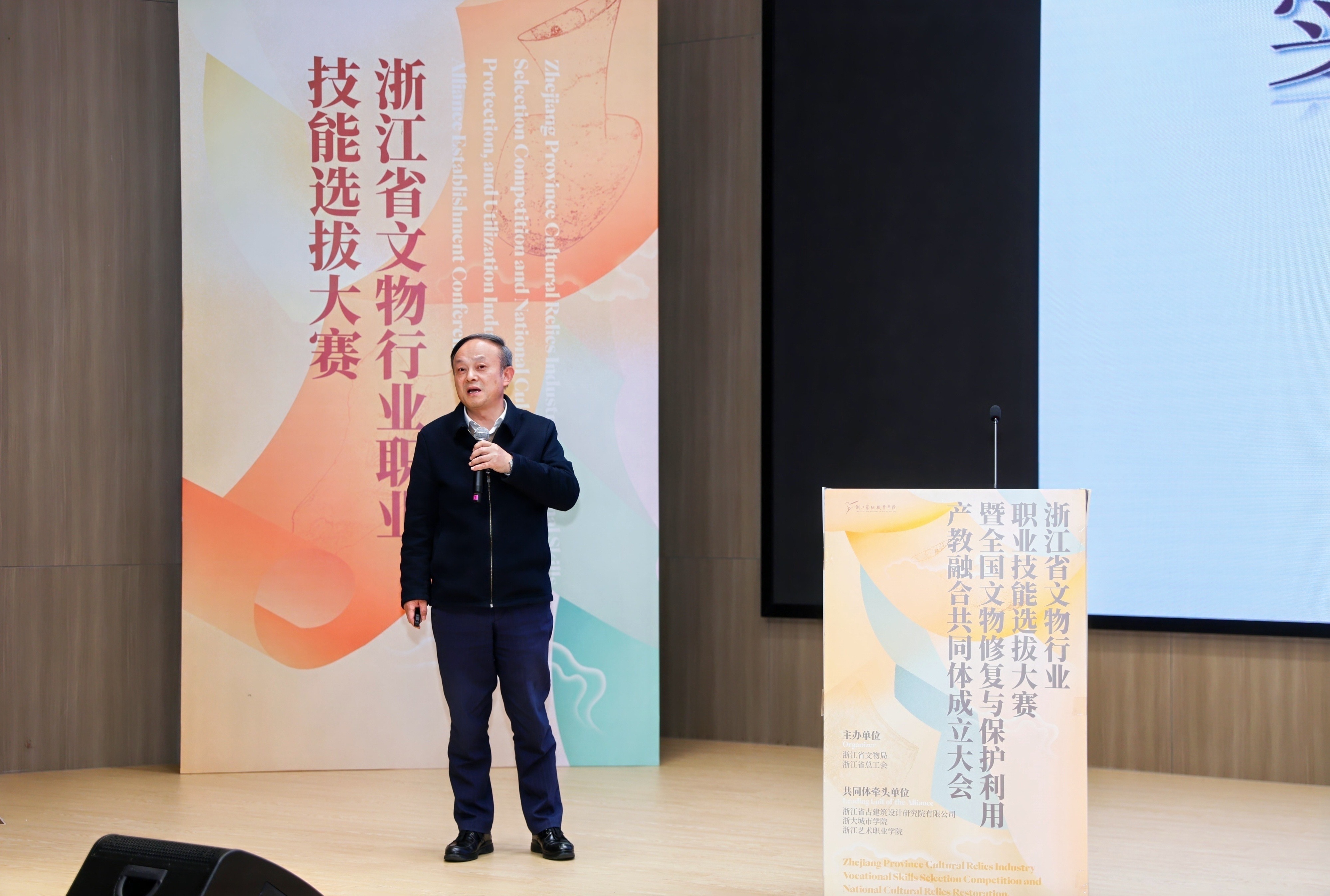 施俊天发布《文物修复与保护利用产教融合共同体发展规划》,详细阐述了共同体的建设目标、建设内容、合作机制及未来规划。他提出,文物修复与保护利用产教融合共同体的成立,是贯彻落实教育部、国家文物局《关于推动新时代文物职业教育改革发展的实施意见》,推动文物修复与保护事业的繁荣发展的重要举措,浙江艺术职业学院将为浙江两个“先行”和文博强省建设贡献力量。