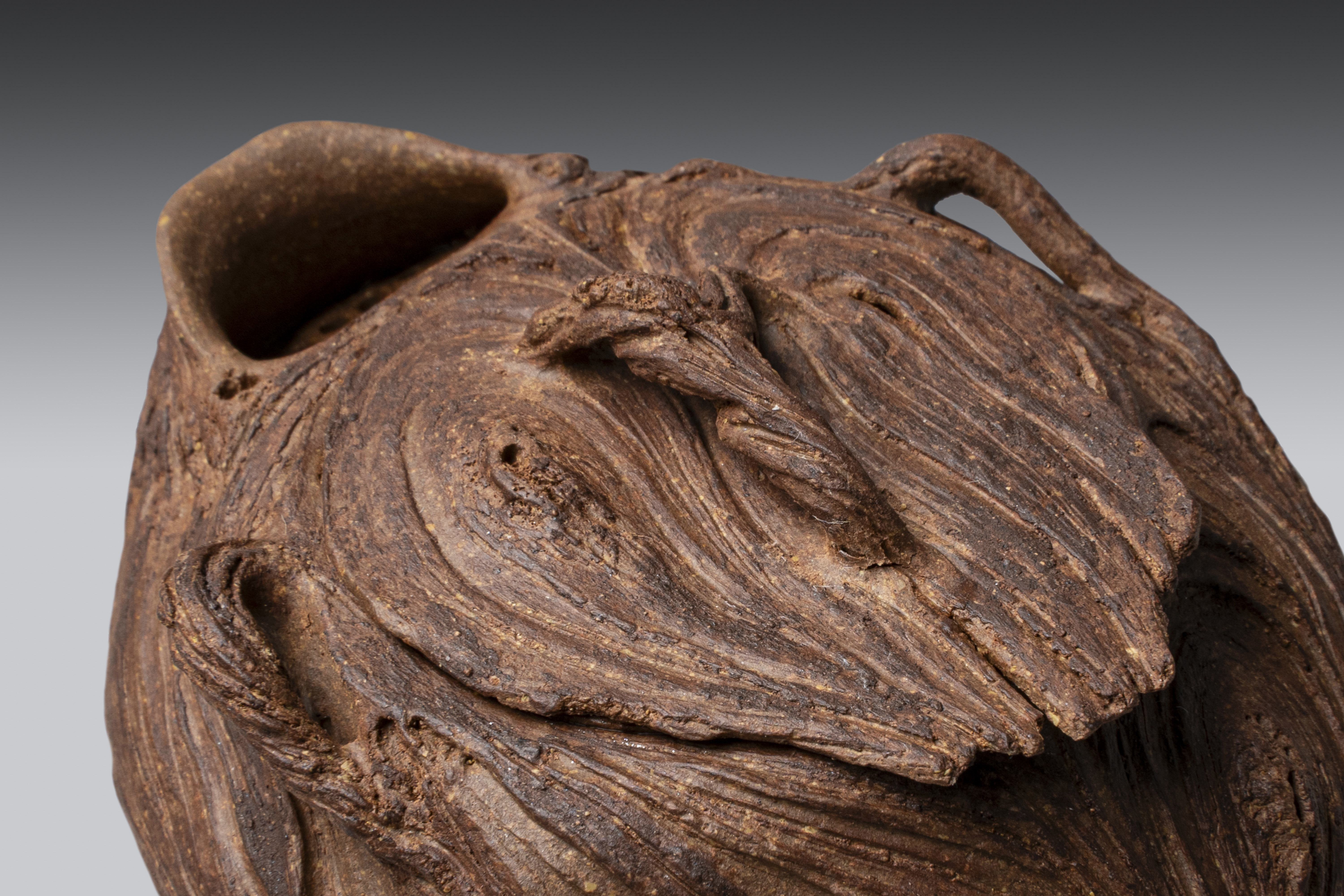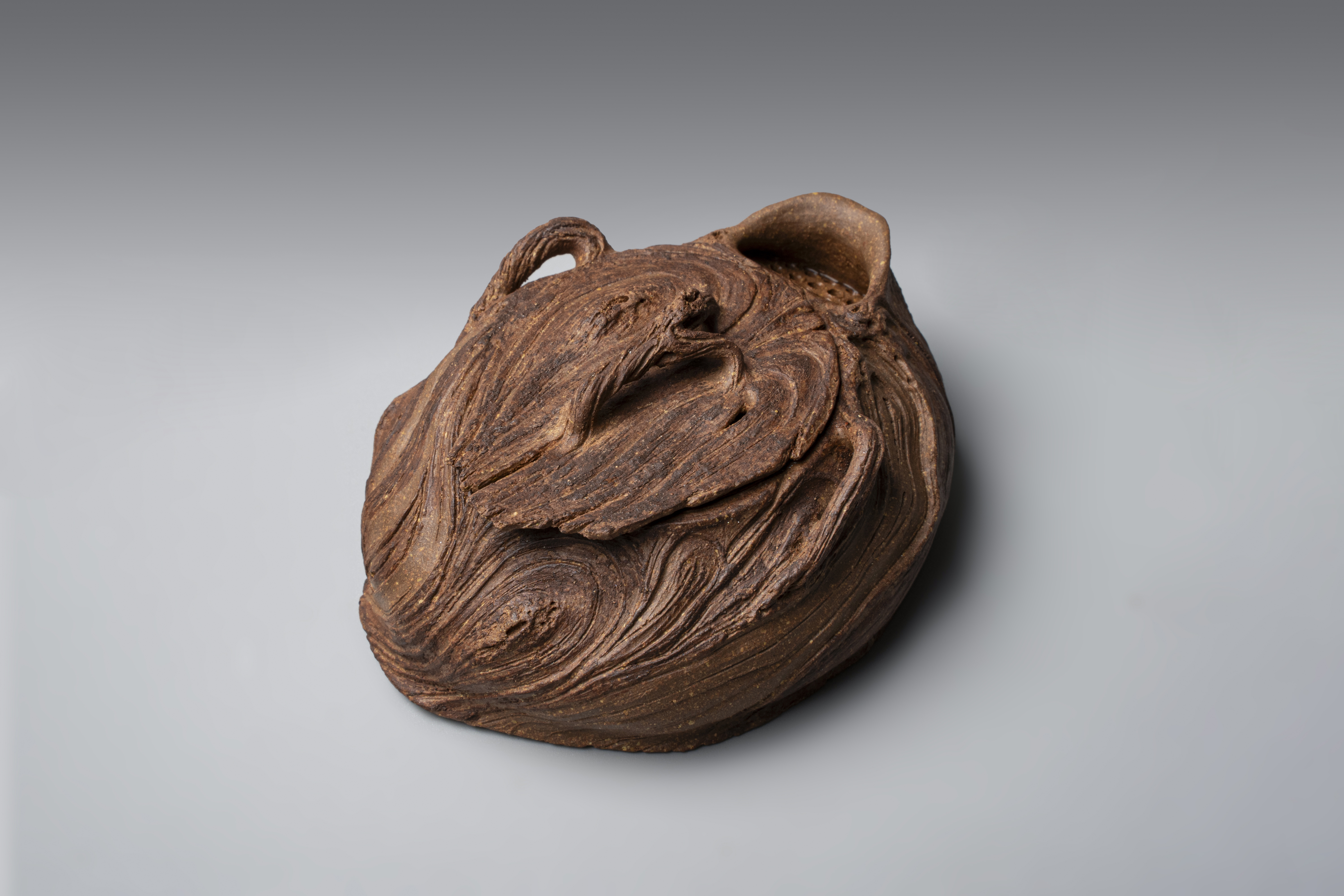 创作理念:这把宝瓶的创作最开始是因为一款新的泥料的烧成。出来的效果一下就让我联想到了以前外婆家门口的一棵古树。确定好主题后,在细节上,添加了很多长的线条。我认为长线条是有流动的,有力量的,就好像虽为枯木也可逢春。在技法上运用了手捏,拍泥片还有粉引。手捏的技法会让整个壶型状态更加质朴和放松。传统的紫砂壶拍泥片则能让其在实用性功能性上有好的把控。