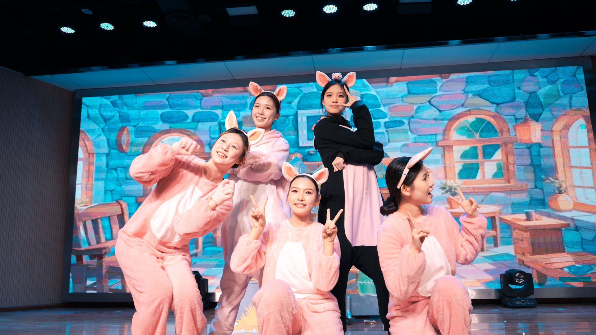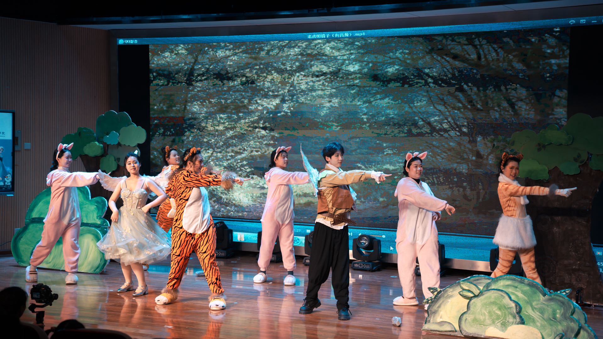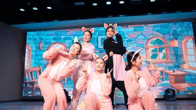 短短一个月的准备时间里,学生们根据自身特长自主组成演员组和道具组,并同步分设AB组,确保每一场演出都有备选方案,能够完美呈现。演员组由王皆慧老师全程指导,道具组由申玉洁老师陪同支持。从剧本编创、排练准备到舞台表演,全流程均由学前教育专业学生们合作完成。舞台上优美可爱、设计巧妙的道具布景以及精致形象的妆造,也都出自道具团队学生们的巧手。