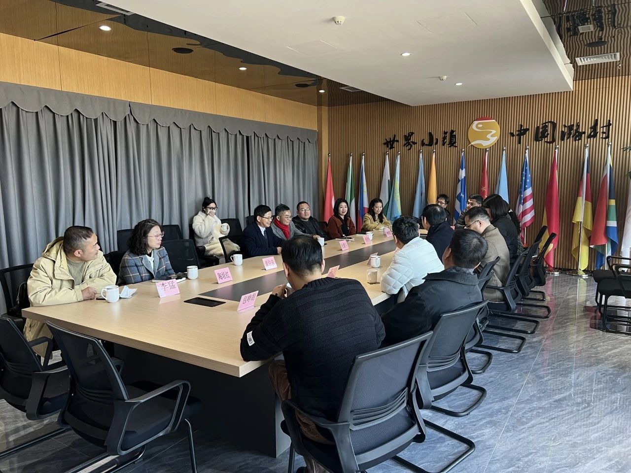 随后,施俊天与省级文化特派员、我校教师陈楠江、齐帅,产学合作处处长屠灵华,设计学院党总支副书记、副院长何佳玮,音乐学院副院长章蔓丽,演艺与教育学院副院长荆芳,舞蹈学院副院长包峥剡等以及世界乡村旅游理事会驻会主席兼秘书长干永福等围绕潞村文旅发展、规划情况、2025年项目谋划展开交流活动。各方就潞村的文化旅游发展前景、浙江艺术职业学院的支援计划以及潞村景区运营公司的配套发展措施等议题展开了热烈讨论,旨在将潞村打造成为浙艺支援地方建设人文乡村的典范。