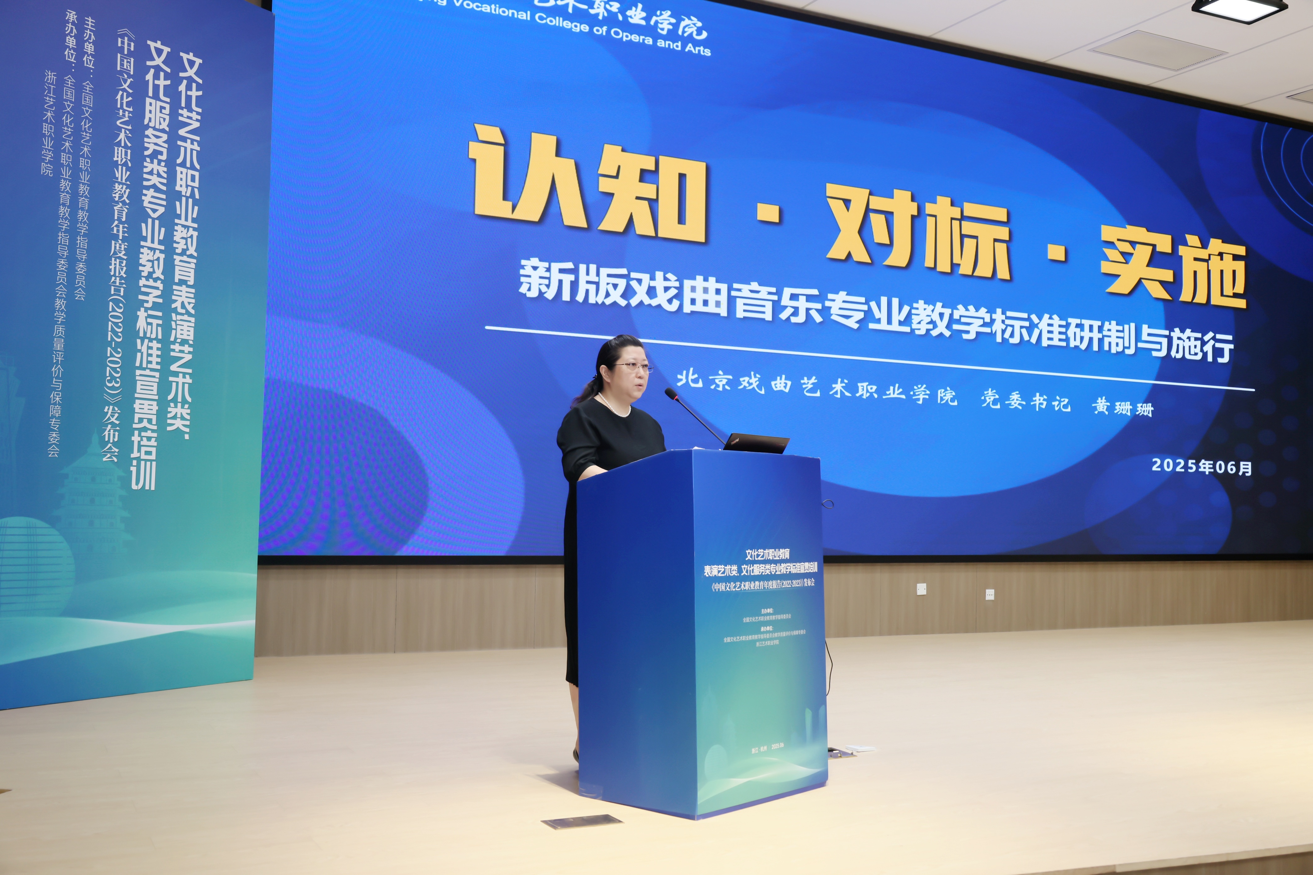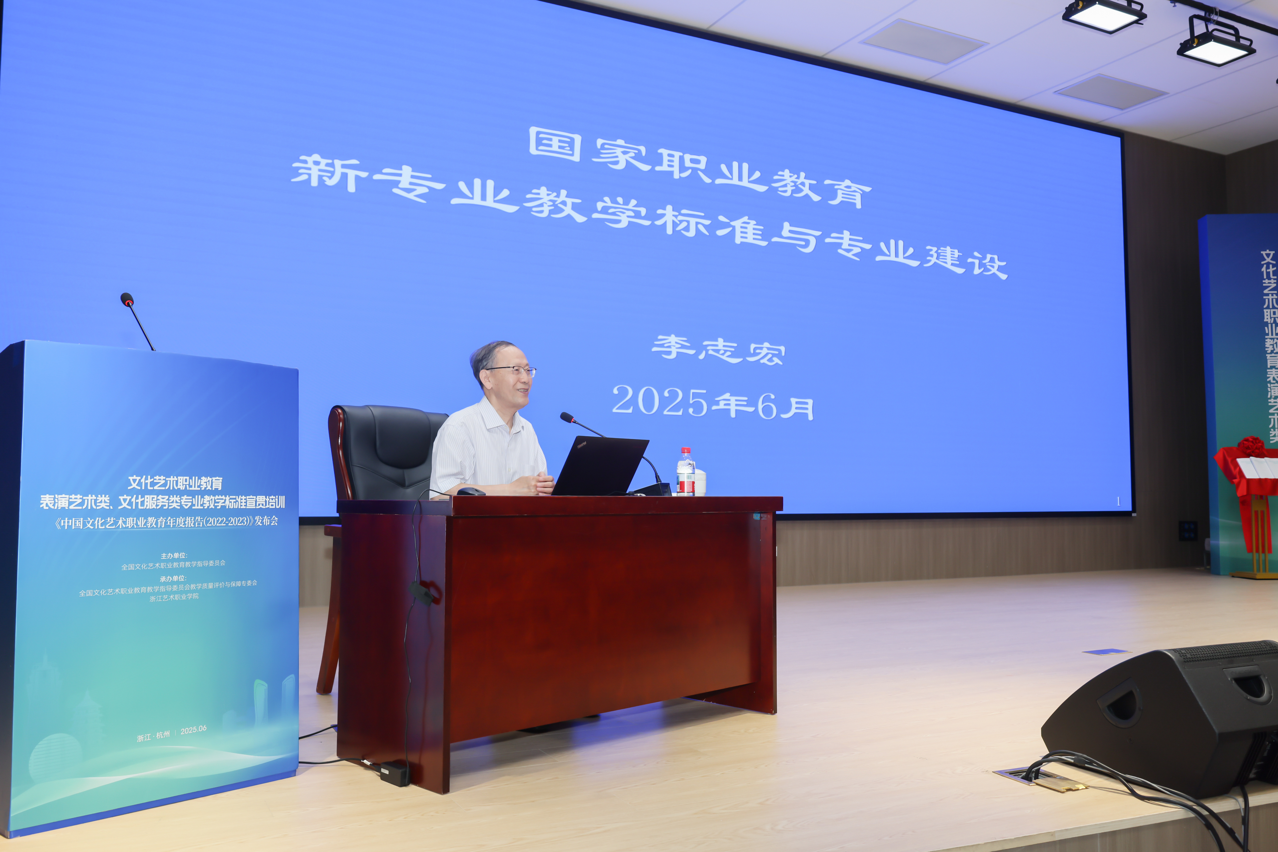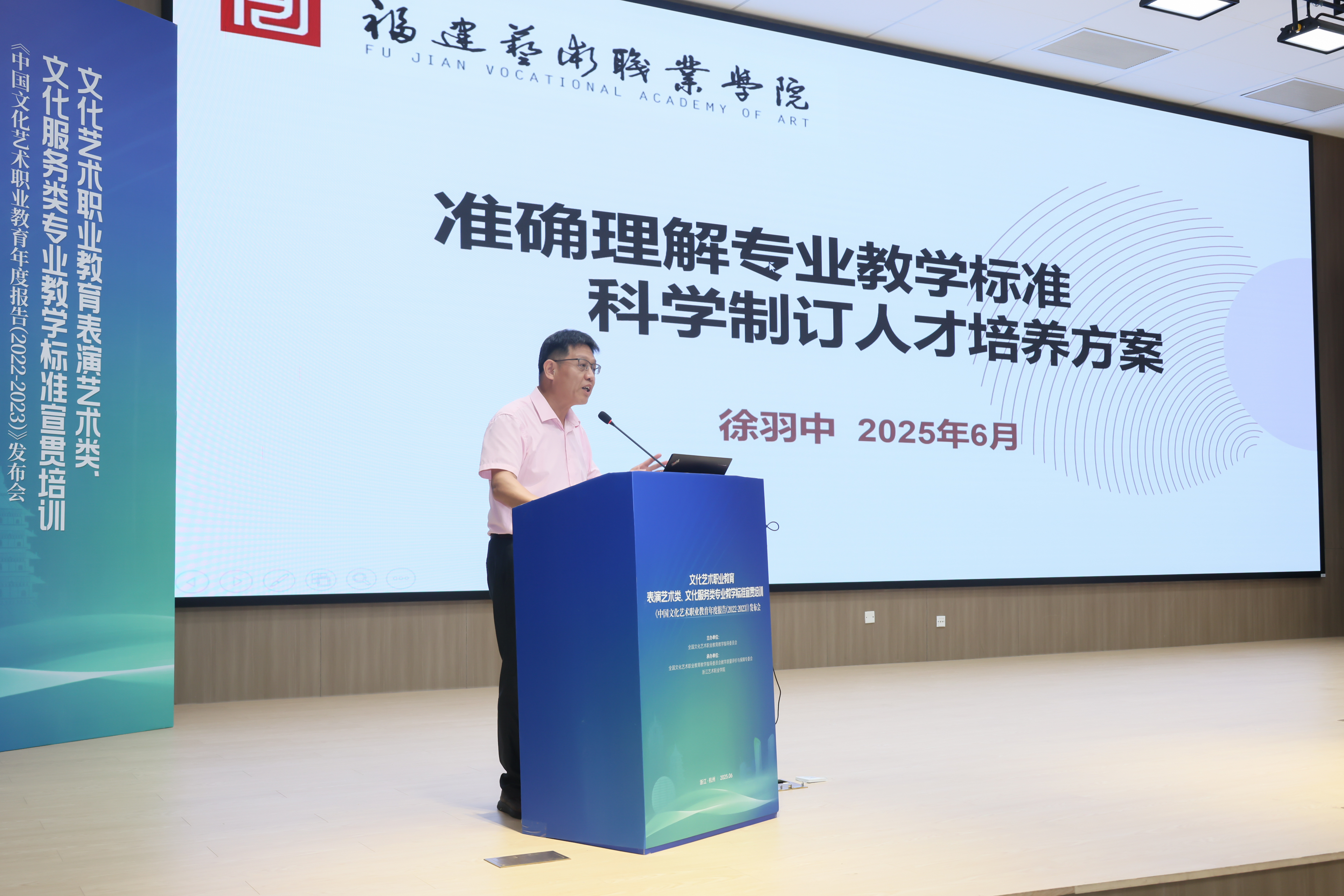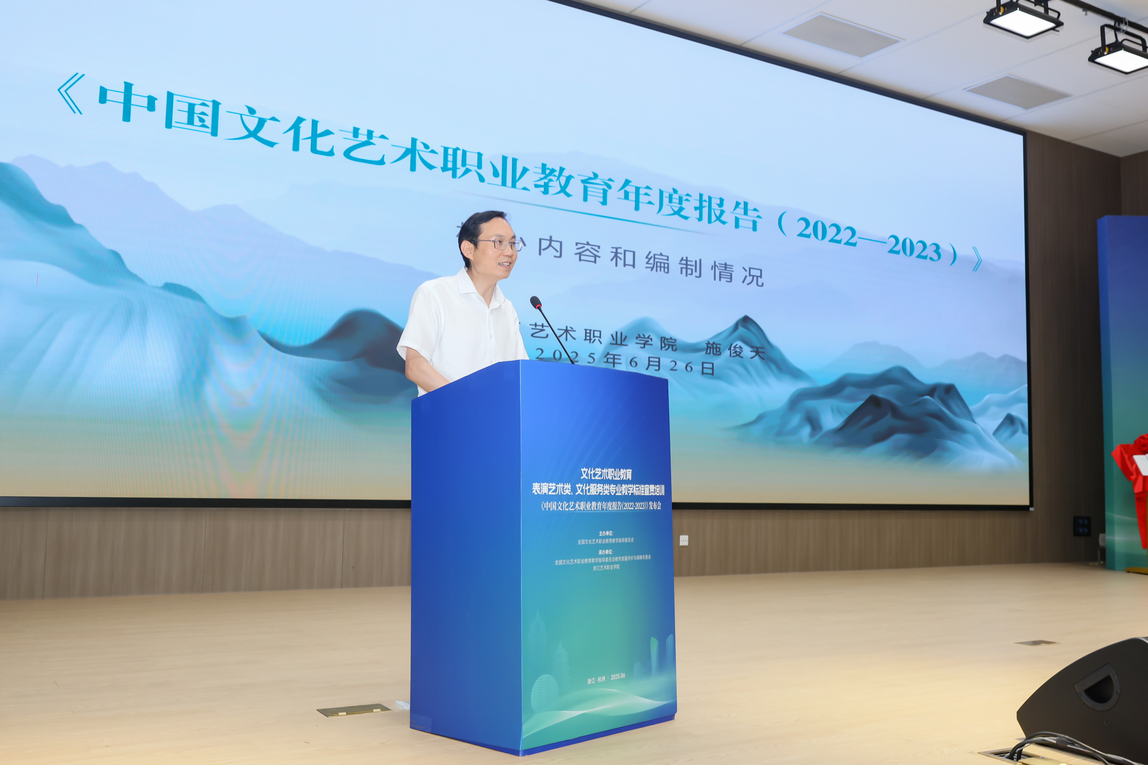文化和旅游部科技教育司副司长刘冬妍,浙江省文化广电和旅游厅二级巡视员程钢,教育部标准研制综合组组长、教育部教育评估中心原副主任李志宏,文化艺术行指委副主任委员、文化艺术类标准研制工作组副组长黄杭娟,浙江艺术职业学院党委书记薛亮、校长施俊天等出席,近200位文化艺术行指委委员和艺术职业院校负责人、专业带头人、骨干教师等齐聚一堂,共同解读和探讨新版文化艺术类专业教学标准。