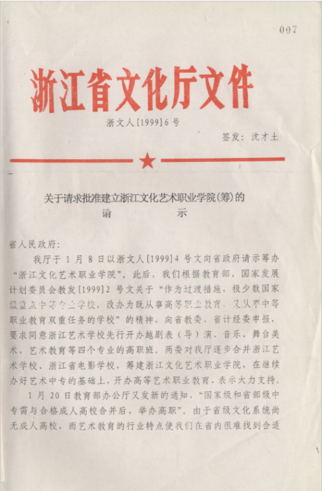 关于请求批准建立浙江文化艺术职业学院(筹)请示