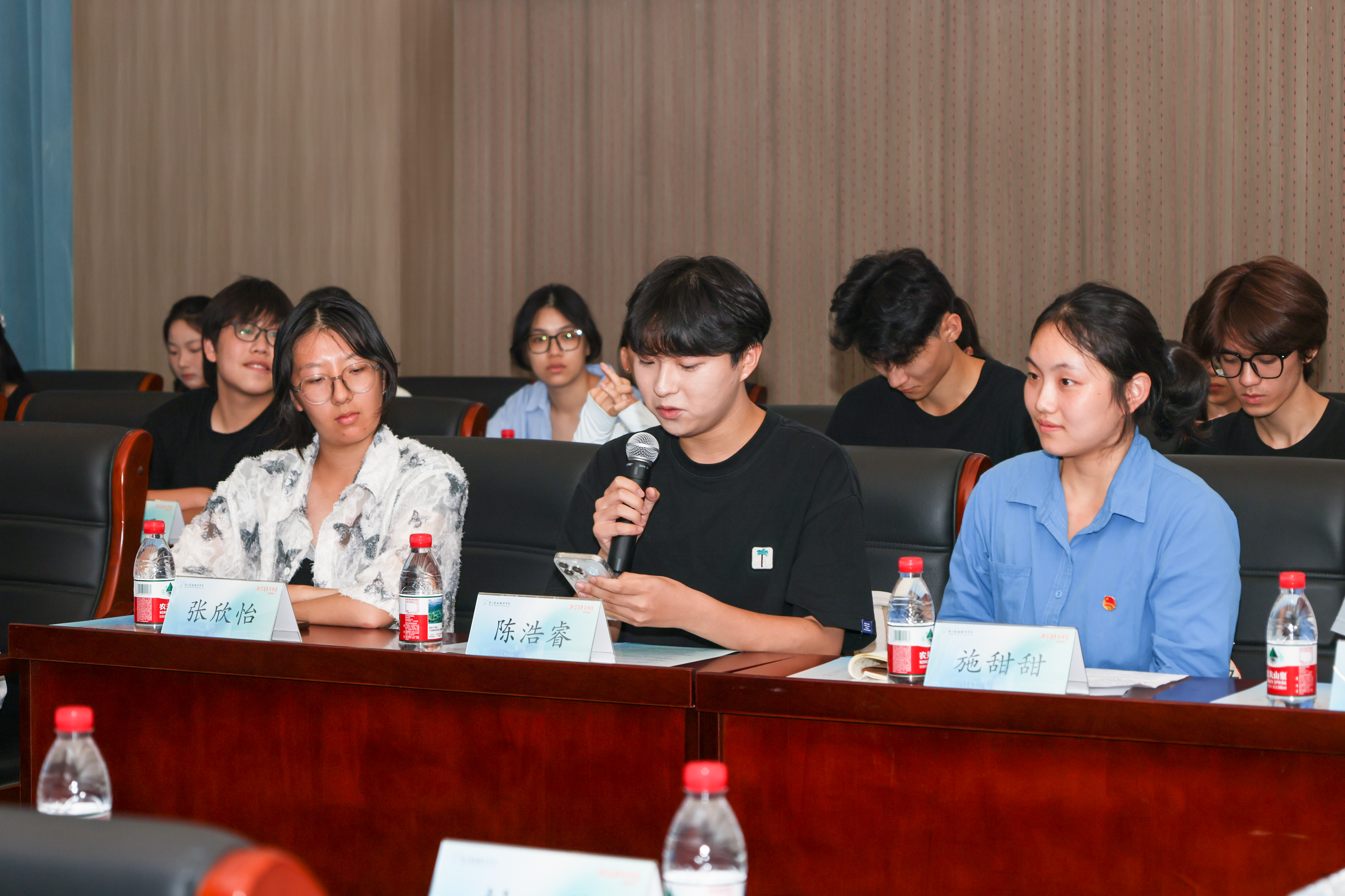 在互动环节,来自戏曲、音乐、舞蹈、设计等学院的新生代表,与来自印尼、巴基斯坦的国际留学生共聚一堂。他们踊跃发言,围绕专业学习与生涯规划等话题深入交流,并就“如何备考专升本”、“如何将理论与艺术实践相结合”以及“如何参与校园实践项目”等实际问题,向师长们现场请教。此次交流有效地扫除了新生们的迷茫,帮助他们打通了初入大学的第一关,现场收效颇丰。