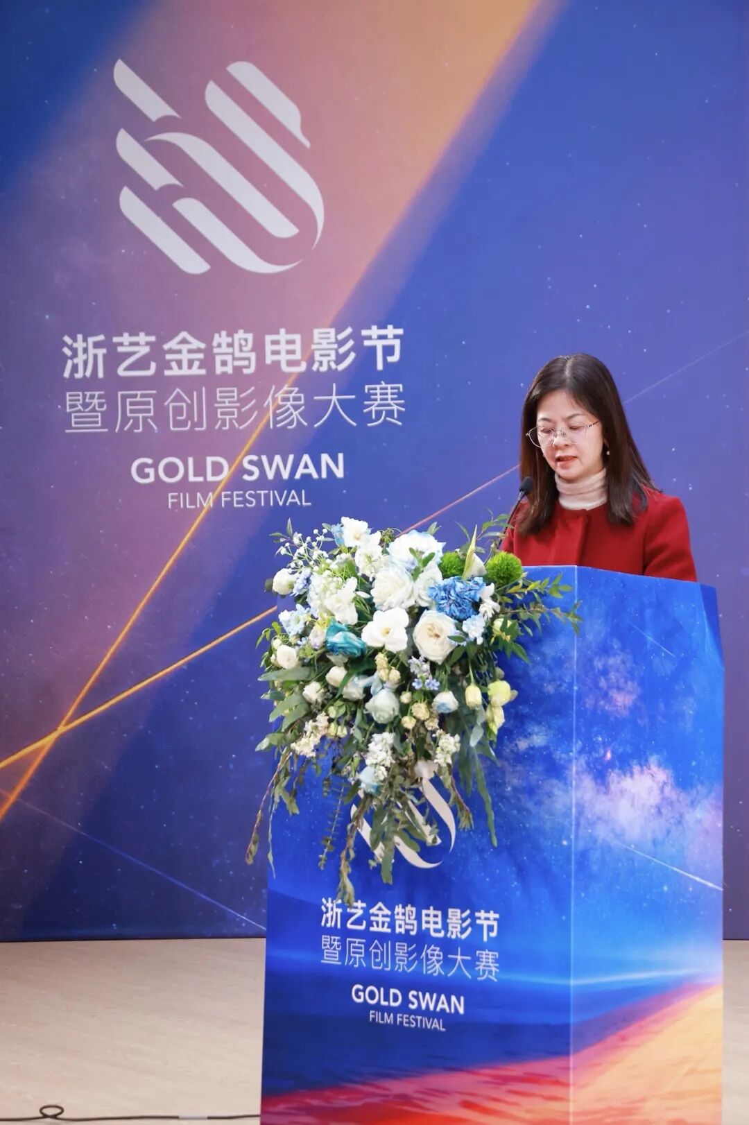 我们看到,一股充满着青春活力与创新创造的力量正注入影视行业,与过往的佳绩一起托举出属于电影人的荣耀奖杯。面对本届电影周产生的最佳导演奖、最佳编剧奖、最佳摄影奖等荣誉,我们倍感骄傲和自豪。青年电影人以影作奖,载誉而归,怀揣着这份底气将金鹄电影周越办越好,让影视行业越来越出彩。