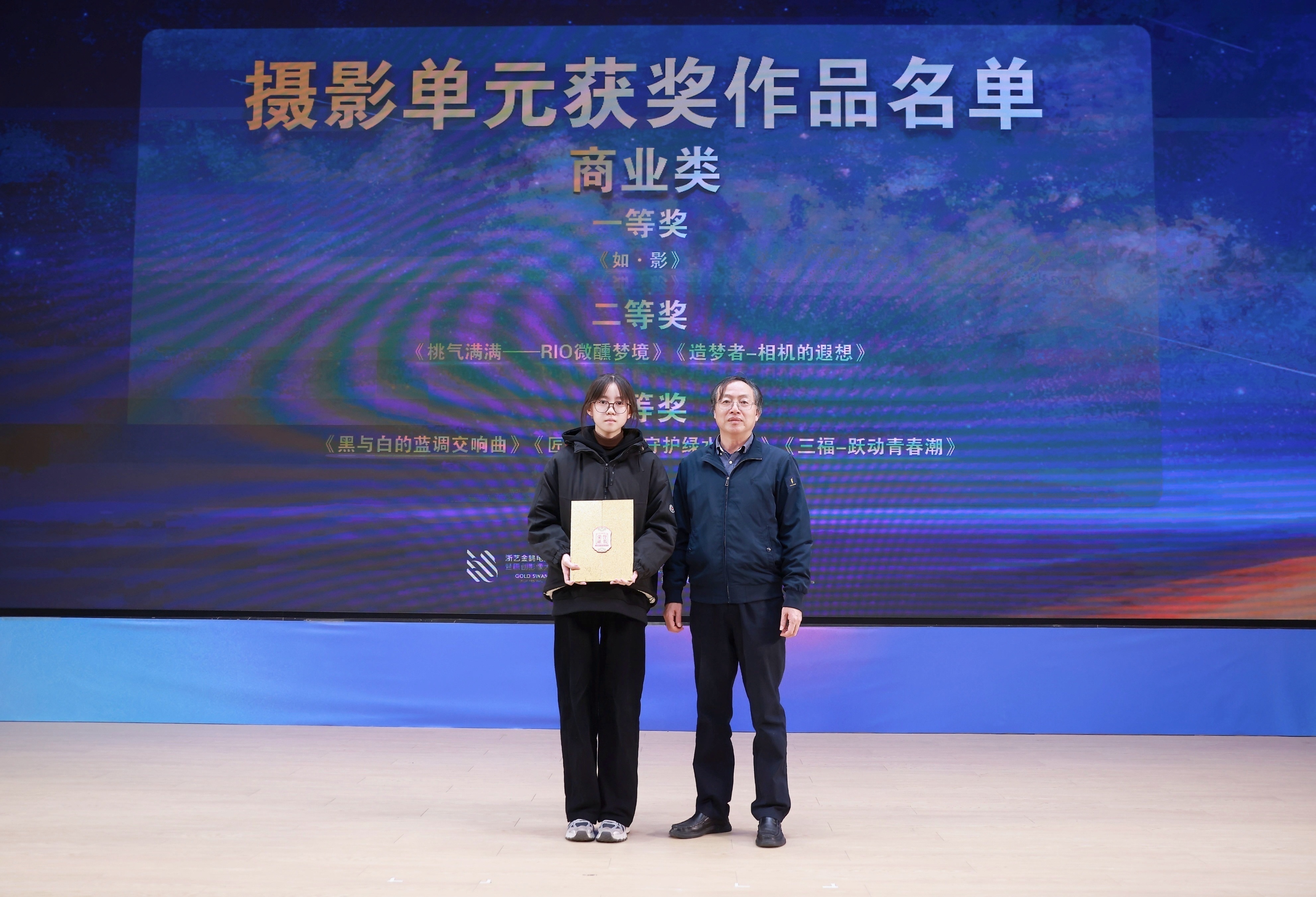 11月21日晚,由浙江省教育厅、浙江省文化广电和旅游厅、浙江省电影局、浙江省电影家协会指导,中国艺术职业教育学会主办,浙江艺术职业学院、金鹄青年电影周暨原创影像大赛组委会、微短剧行业产教融合共同体联合承办的第八届金鹄青年电影周暨原创影像大赛,在浙江艺术职业学院落幕。