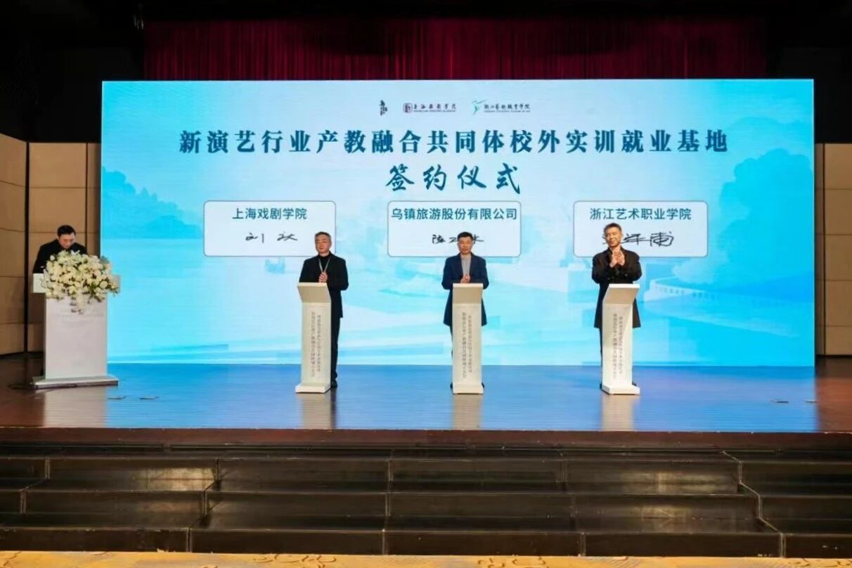 据悉,共同体将依托上海戏剧学院的艺术创作优势、浙江艺术职业学院的人才资源优势及乌镇的场地与产业平台,每年联合培养百名新演艺表导演人才,提供五百余人次继续教育,开展多项重点课题研究与横向合作,逐步建成全国新演艺行业产教融合的标杆载体。此次共同体的成立,不仅搭建了院校与行业深度合作的桥梁,更将推动教育链、人才链与产业链、创新链的有机衔接,为新演艺行业高质量发展提供坚实的支撑,助力中华优秀传统文化的创造性转化和创新性发展。