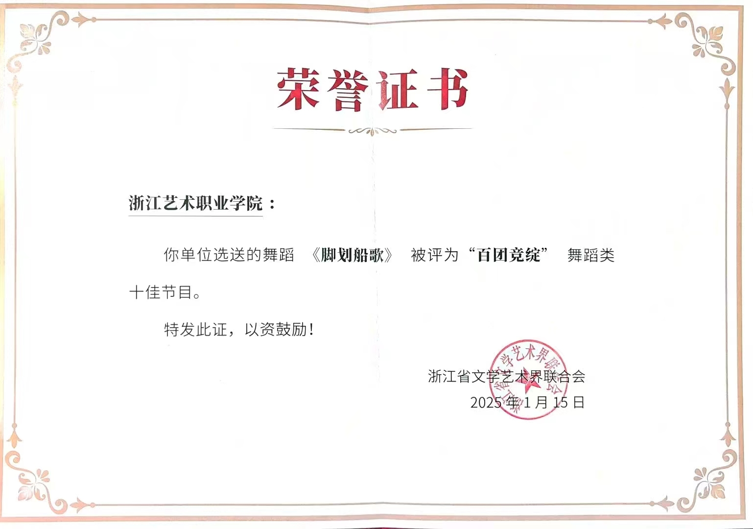 从获得“浙江风格 江南舞韵”舞蹈新作品展演“十佳作品”,到登上全国舞台并获国家级荣誉,《脚划船歌》的成长历程,生动诠释了浙艺舞蹈艺术的持续突破与魅力绽放。