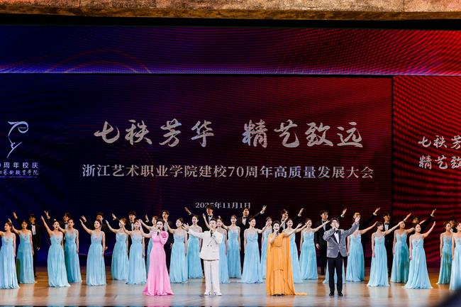 2025年11月1日,以“七秩芳华精艺致远”为主题的浙江艺术职业学院建校70周年系列活动成功举办,各级领导、嘉宾、海内外校友代表、合作企业机构代表、离退休教职工代表和在校师生齐聚浙艺,深情回望从70年光辉历程,齐声庆贺新世纪发展成就,共同谋划新时代文化艺术职业教育未来……