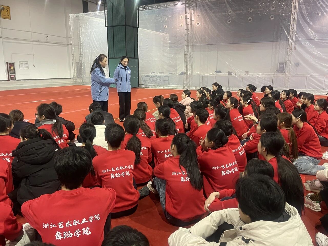 从排练启动到最后一刻,舞蹈学院教师团队全程驻守义乌,成为学子们最坚实的后盾。学校领导、老师也多次赶赴驻地探望,深入排练现场了解进度,叮嘱同学们兼顾排练质量与身心状态。