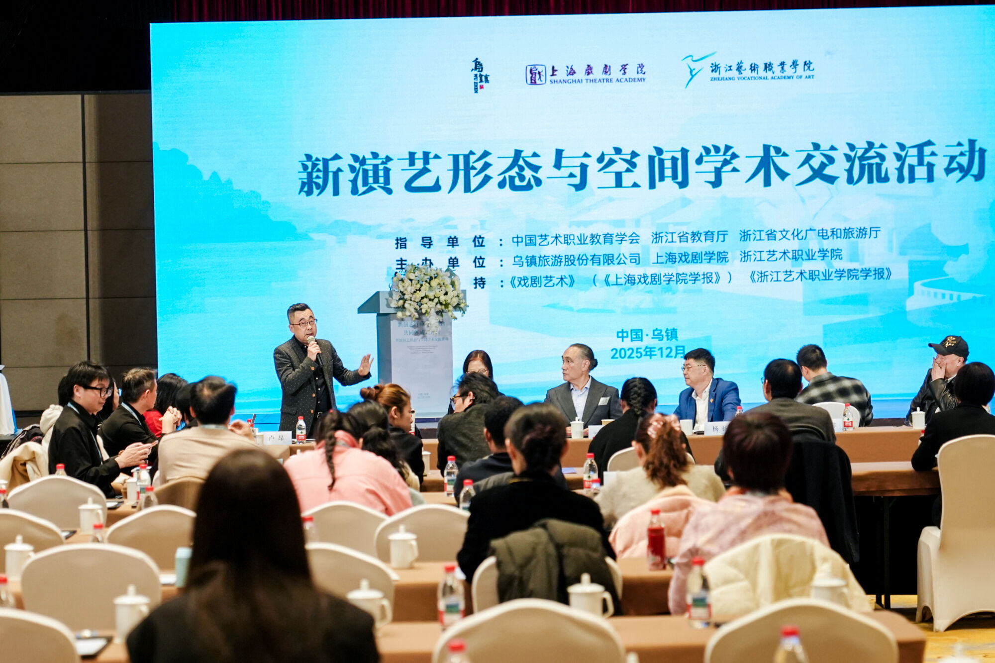 <p style="text-indent:28px"><span style="font-family: 宋体; font-size: 16px;">当天下午举办的新演艺形态与空间学术研讨会亮点纷呈。来自国际戏剧协会、中国人民大学、上海戏剧学院、浙江艺术职业学院等单位的专家学者,围绕“演艺新空间”“数字沉浸式演艺”等前沿议题发表特邀报告,分享了在演艺形态创新、空间资源开发、技术融合应用等方面的研究成果与实践经验。与会代表结合自身实践展开深入交流,为新演艺行业的数字化、智能化、融合化升级建言献策。</span></p>