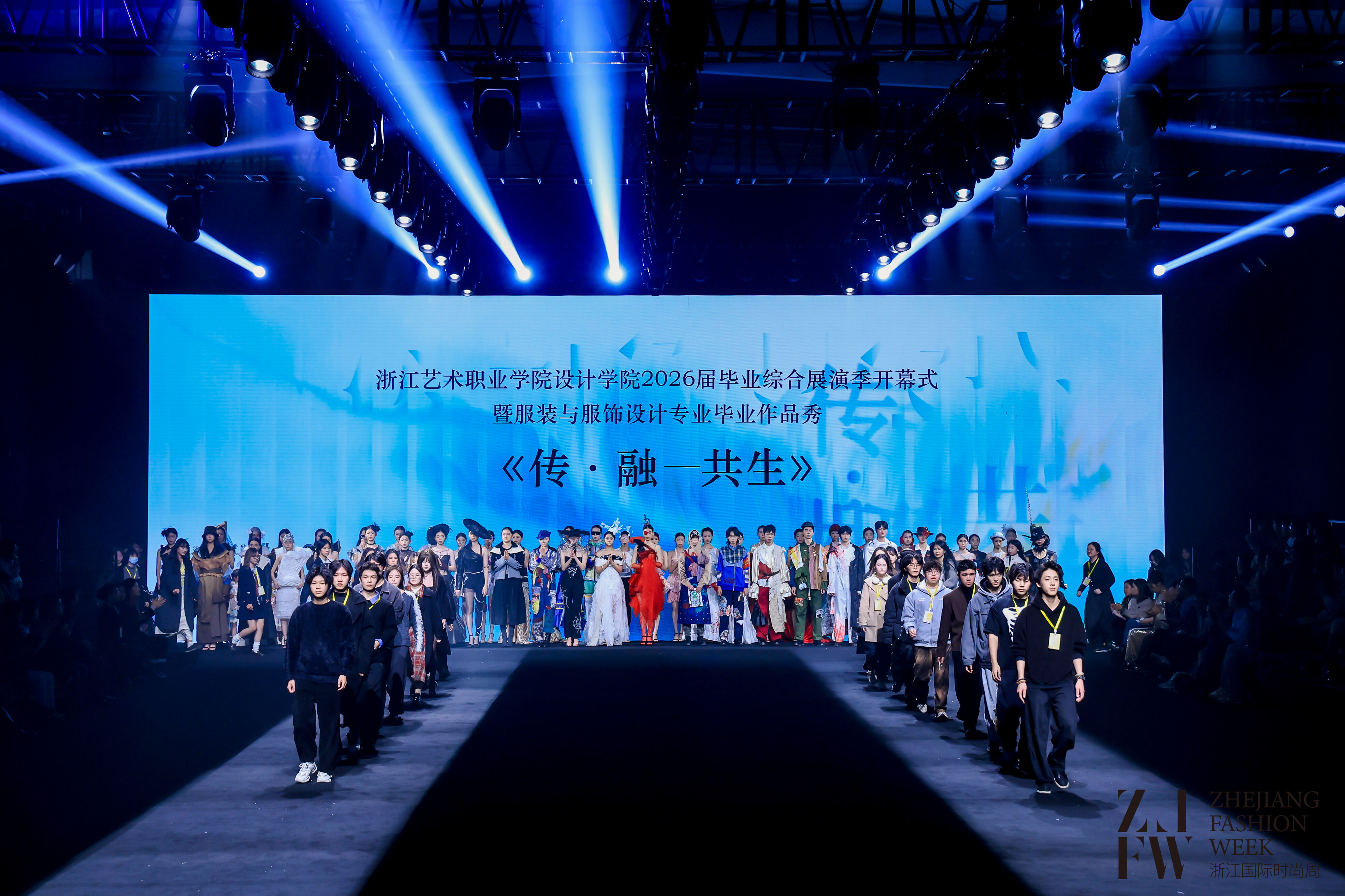 <p style="text-indent:28px"><span style="font-family: 宋体; font-size: 14px;"><span style="font-size: 16px; font-family: 宋体;">本次发布涵盖了服装创意设计、成衣设计以及</span><span style="font-size: 16px; font-family: Calibri;">3D</span><span style="font-size: 16px; font-family: 宋体;">、</span><span style="font-size: 16px; font-family: Calibri;">AI</span><span style="font-size: 16px; font-family: 宋体;">技术融合的完整秀场,由</span><span style="font-size: 16px; font-family: Calibri;">2026</span><span style="font-size: 16px; font-family: 宋体;">届</span><span style="font-size: 16px; font-family: Calibri;">79</span><span style="font-size: 16px; font-family: 宋体;">位毕业生以“传·融—共生”为理念进行设计创作,通过传统与现代的对话重构时尚语言,将创意、技术、展示融为一体。在传递文化传承的同时,以创新视角完整地展现了学生在专业学习上取得的核心成就。浙江艺术职业学院戏剧影视学院模特团队及潮童星童模团队共同呈现作品发布,大秀好评如潮,掌声经久不息</span>。</span></p>