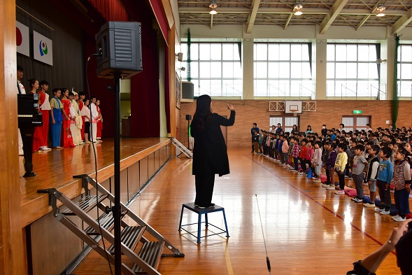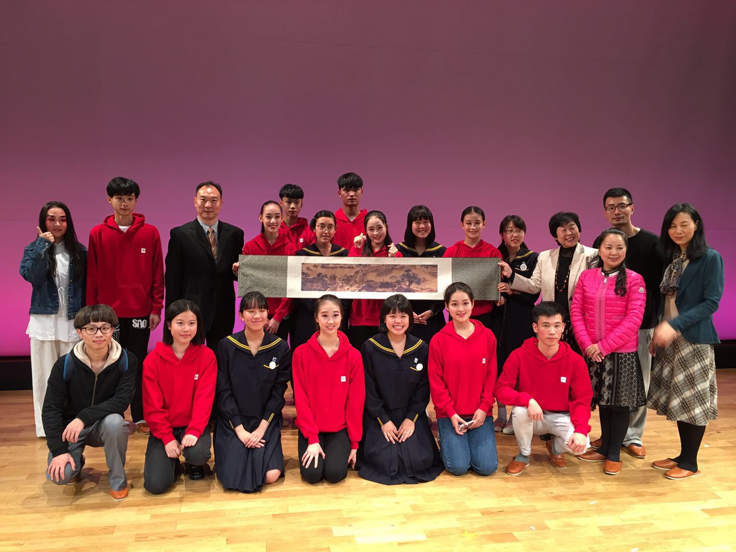 每场演出结束后郭团长均给予点评,通过点评让我们的艺术团在每一场演出中不断得以完善和提高。演出结束后,在我们整理好行礼准备返程前,日方学校的校长还带着师生们和我们浙艺艺术团的师生们进行了友好的深切交流。
