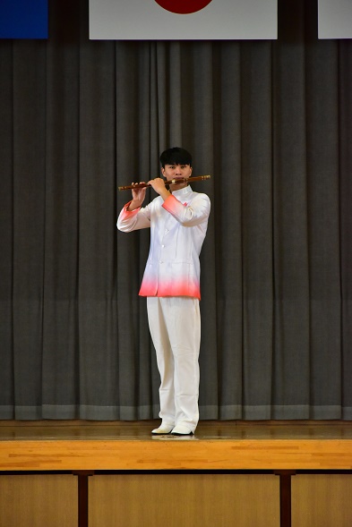 交流演出节目,从唢呐独奏和舞蹈《正月十五闹雪灯》,越剧《那时候的好回忆》,独唱和舞蹈《花儿为什么会这么红》,二胡独奏《赛马》,笙独、笛子、双人舞《少年四弦合欢花》,笙,笛子,唢呐合奏《百鸟朝凤》,到独唱《美丽的浙江》,每个节目都十分精彩。我们艺术团中的演员年龄虽小,高强度高密度的行程让我们看到了专业舞台的适应能力和应变能力,值得点赞。每位同学访日期间都表现出了极高的专业素养,除了演出之外的勤学苦练外,每场演出前,到达目的地之后,和老师们一起快速对接音乐,音响,匆匆走台快闪,充分发挥了不怕苦不怕累的专业精神。