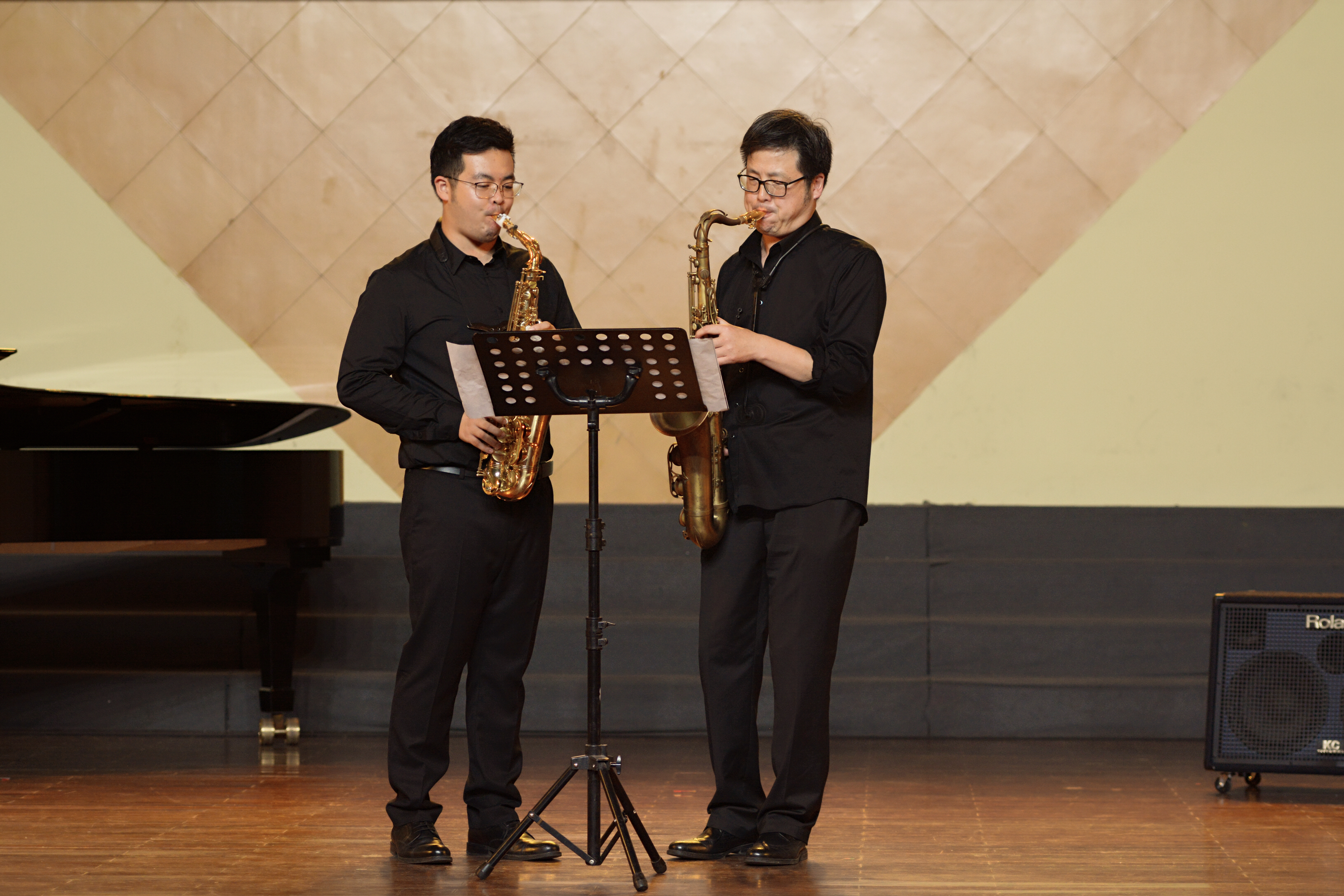 当晚周远星老师也为大家带来了一首萨克斯风与钢琴的作品《Treacherous Tango》,这首作品中文翻译是“狡猾的探戈”。该作品旋律时而欢快时而紧张,一段连续高速的旋律之后突然嘎然停止,随即又引出新的音乐动机,使观众始终保持在猜测下一秒将发生什么的状态当中,这也恰恰体现出该作品“狡猾”的主题,周远星老师将该作品演绎的淋漓精致。