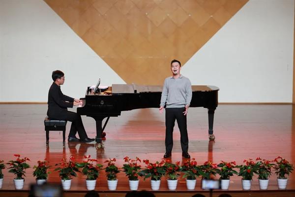 音乐会在热烈的掌声中拉开帷幕,本场音乐会共有十五首曲目,曲目种类丰富、风格多样。两位同学以其饱满的情感、精湛的演唱技巧辅以钢琴再现了声乐艺术的有声维度,以及经典作品中深厚的中华文化底蕴,唱出了喜庆二十大,实现第二个百年奋斗目标的信心和决心。本场音乐会特邀青年钢琴家,音乐学院青年教师熊壮壮担任艺术指导,特邀青年男中音,音乐学院21届优秀毕业生周余亿强担任助演嘉宾。两位学生的专业教师朱卓凡登台演唱一曲《奇妙的和谐》,为音乐会倾情助力。