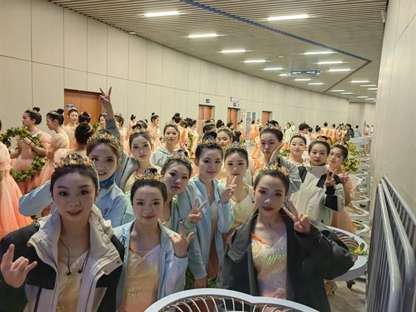 本次开幕式由金桂为主要元素,通过科技手段打造了一个爱的舞台。而我院32位同学们有幸参与这次连接亚洲的盛大演出,在包括第一篇章《心相约》、第三篇章《梦闪耀》和主题曲《我的深情为你守候》等节目中扮演金桂少女。”