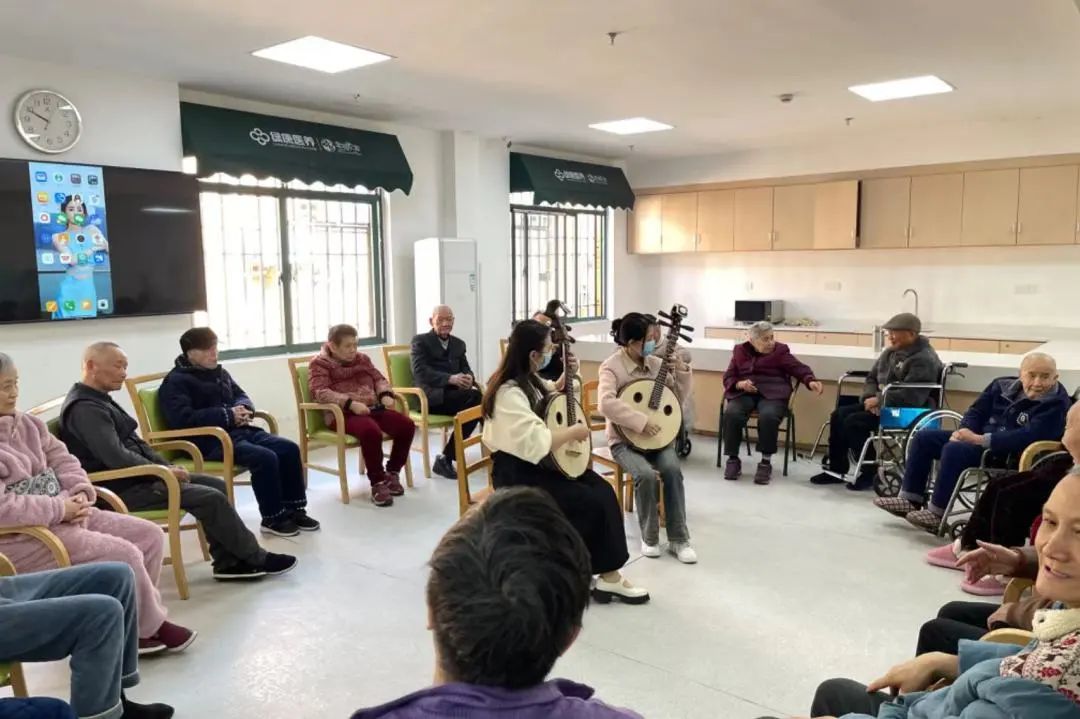 民乐教研室一直关注养老专业人才培育,深度开展产教融合,走访中与两家单位未来合作方向、模式、内容作了分享和交流,特别对于人才培养链成长链作了详细阐述。据工作人员介绍,艺术类课程中的合唱,乐器演奏、书画、摄影、手工制作等都非常受老年人的欢迎,他们参与度高,劲头足,且能带来身心愉悦之感。