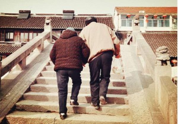 之前看到过一张照片,很受冲击。两位年过半百的老人互相搀扶着过桥,老爷爷小心翼翼的护着,生怕身边的她会被路人碰到或是擦到,即使他自己还要一手拎着东西,即使他自己走路都已经不平稳。
