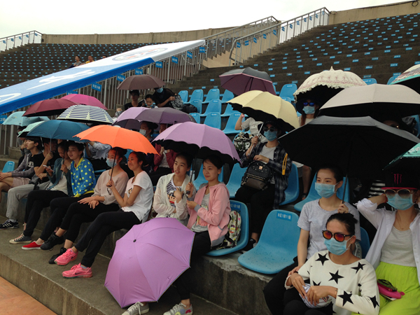 阴雨绵绵,演员们冒雨在台上彩排,却毫无怨言。我们是一个大家庭,暖心事点点滴滴:彩排完,大家汗流浃背,口干舌燥,却不忘相互递水喝。下雨时,观众席上的同学把包聚集起来,用伞和雨衣遮挡雨水。一个苹果,大家一起分享。一包饼干,你一片,我一片,也很满足。