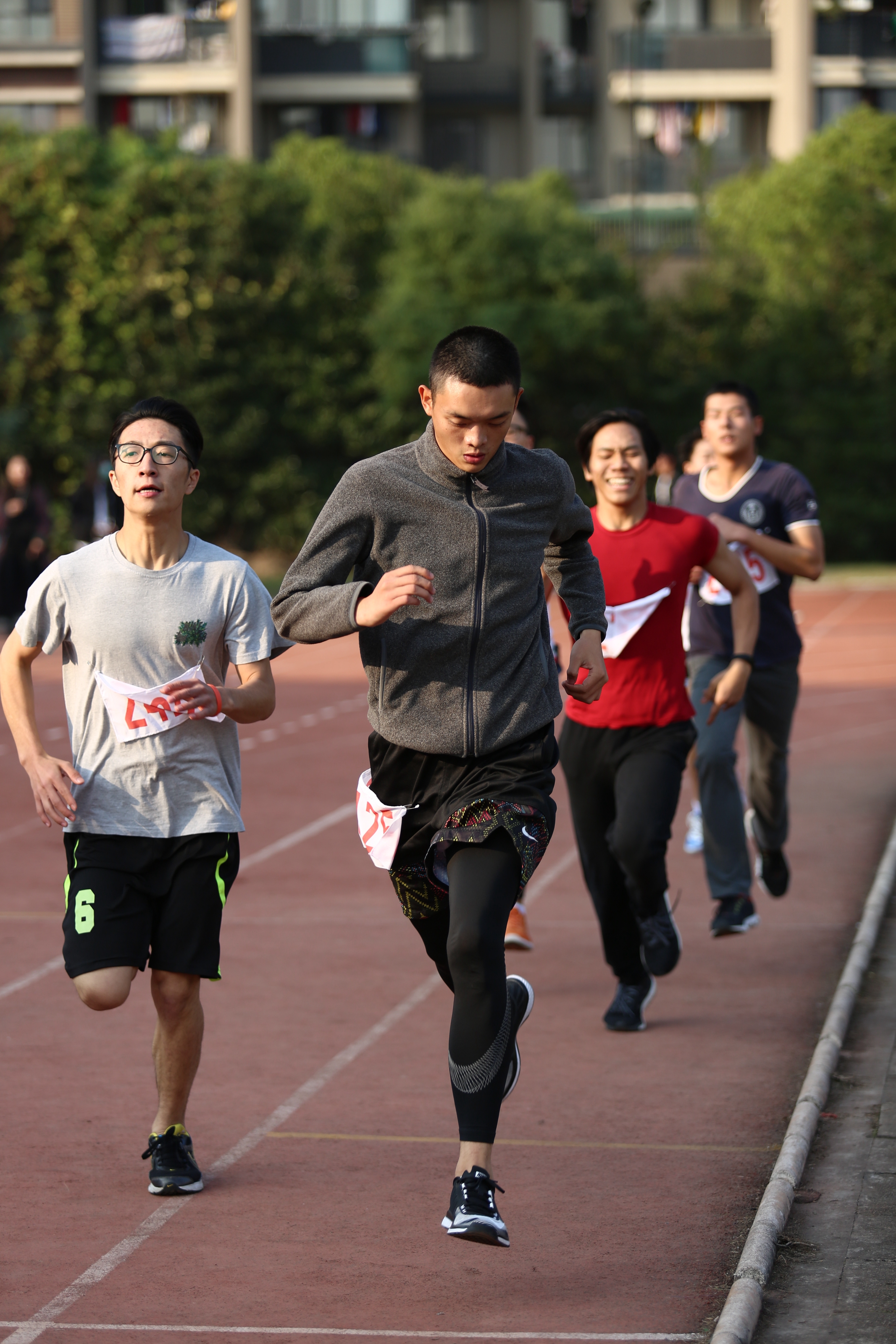 运动精神是一种坚持的精神。赛场上一个个奔跑的身影,从计分表上飞过。有一个身影格外引人注目,那就是我们的沈从文老师,自任教以来每次运动会都会和学生一起参加长跑项目,在大学时期就是长跑运动员,平时也坚持运动锻炼,几十年如一日的运动锻炼让沈老师如今依然可以和年轻的一代共同在赛道上奔跑。