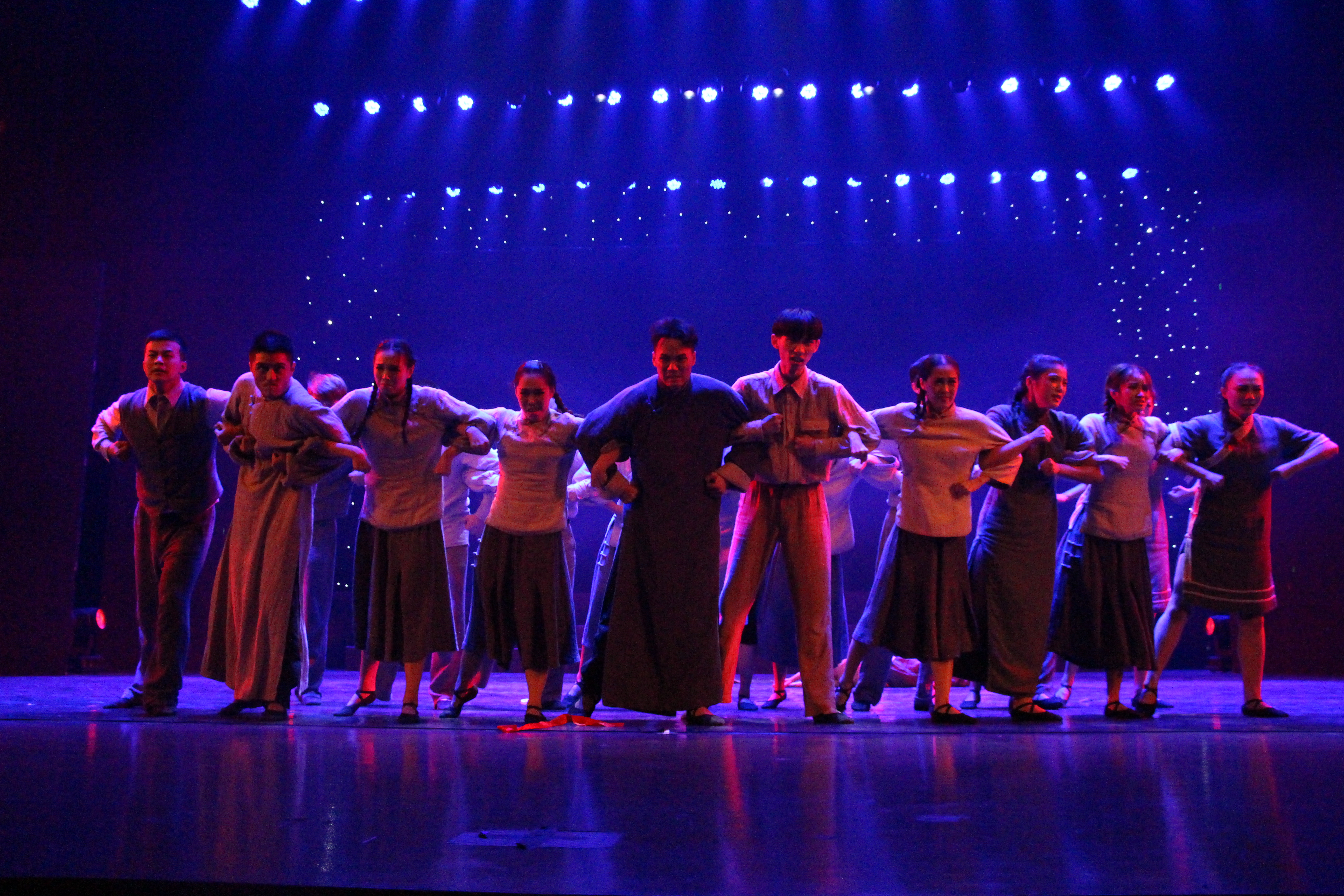 当被问到《红船》这场舞蹈传达了一种怎样的信念,李毅源老师阐述了自己的见解:一场《红船》以嘉兴南湖的红船为故事背景,以意象性的动作语言来表达对未来新社会所产生的憧憬;一根红绸化作希望、信仰、生命,它是星星之火,可以燎原,同时也象征了伟大的红色主义事业。杨博文补充到:《红船》的舞蹈意义更具体的体现为一种精神力量的凝聚与爆发,传达给观众一种精神理念,给人以深刻的启发和见解;在整场舞蹈中,每一根红绸代表着国旗的一针一线,而满场的红绸聚集在一起的时候,代表了革命先辈团结的精神品质。
