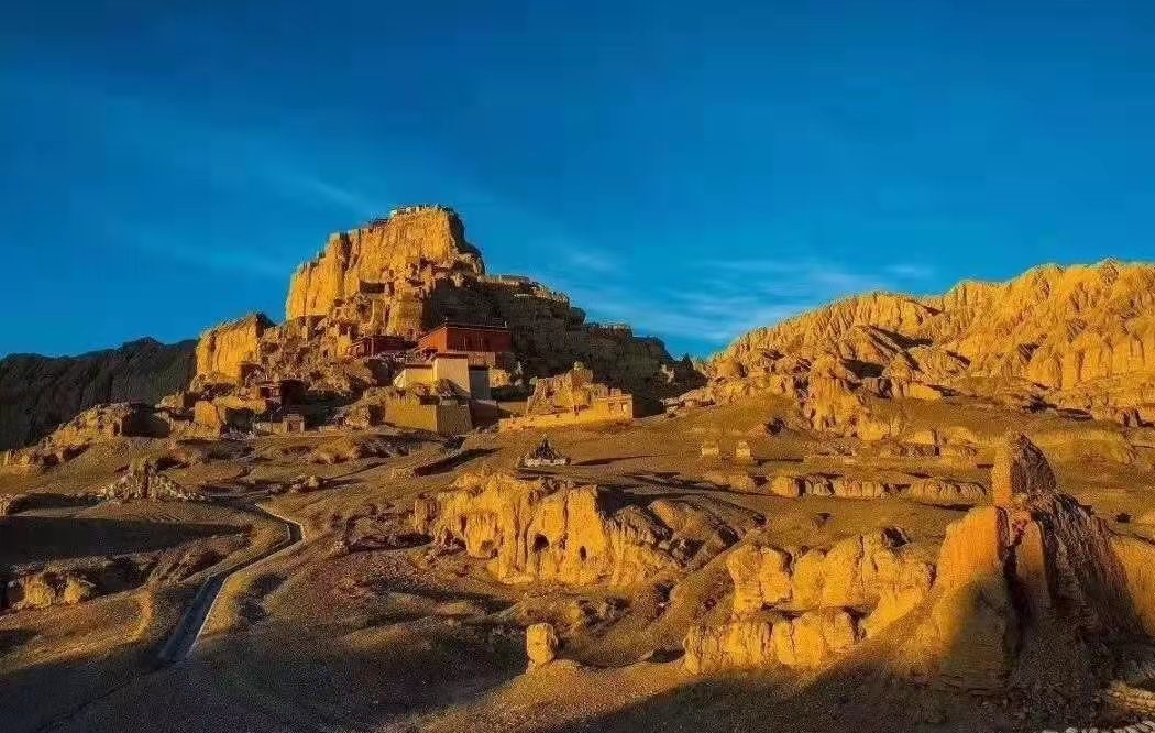 在西藏阿里地区的象泉河畔札达县,有一个神秘的传说,它就是古格王朝。古格王朝是一个最接近天空的遥远国度,是信仰之乡消逝的神秘荣光。西藏吐蕃王朝之后的600多年间,一个名为古格的王国雄踞西藏西部,弘扬佛教,抵御外敌,在历史舞台上留下了浓墨重彩的一笔。然而,300多年前,古格王朝突然由盛而哀,几乎是瞬间消失于茫茫沙海,偌大的王国仅留下恢弘的遗址和遗物。现在的古格王朝只留下了一片废墟,从远处看,一座荒凉的山坡静静地矗立在那里,仿佛向世人诉说着过去的历史也曾有一夜消失的传说。