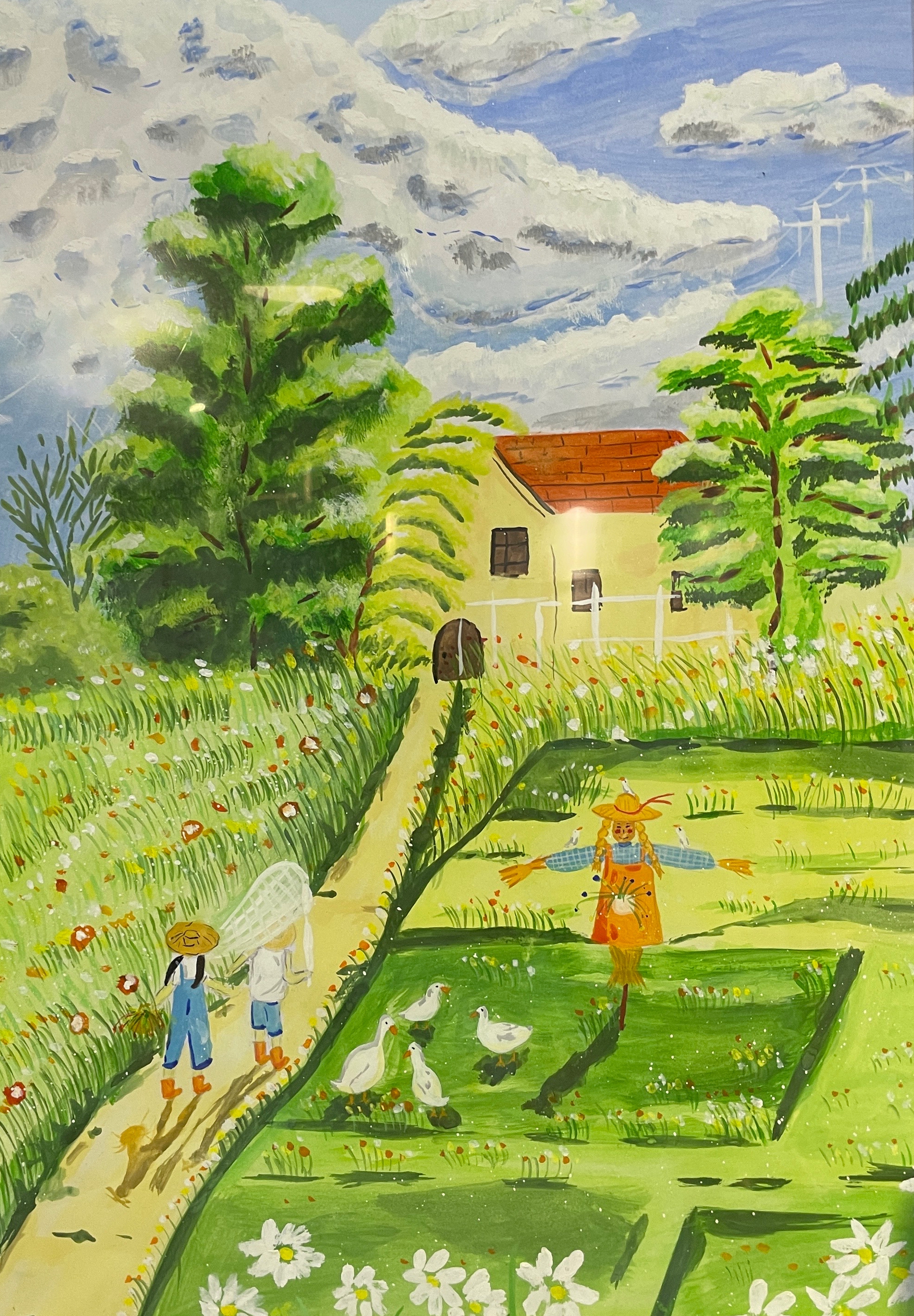 水粉画《小小童年》