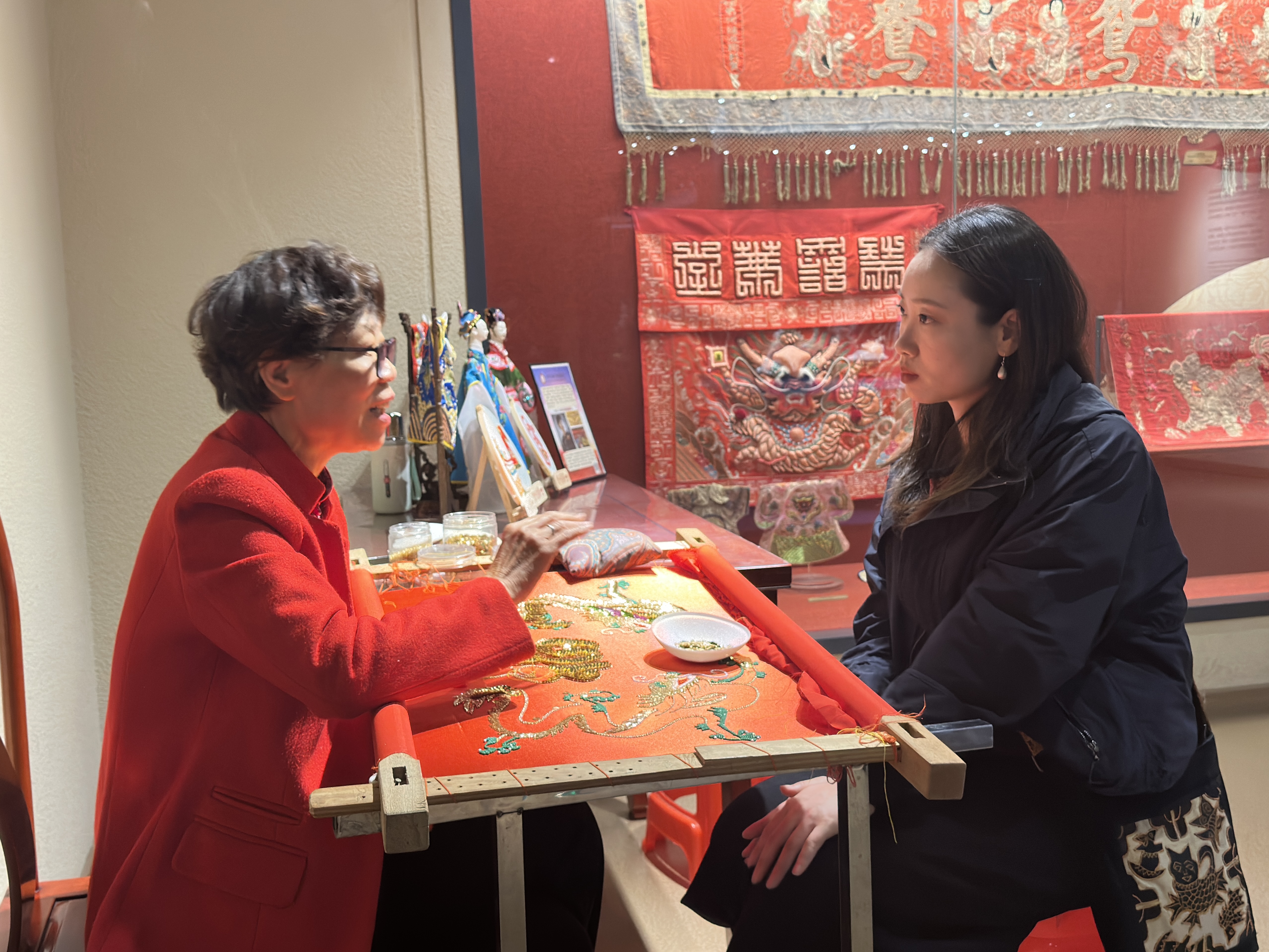 她还利用每个假期开展非遗田野调研,向民间艺人、大师和传承人取经问道,然后再将第一手的调研资料传授给学生们。她认为,教学的场域不应该局限在教学楼的课堂里,博物馆、美术馆、传承人工坊、乡村田野、展会市场,都可以成为延展的课堂和教学实践的场所。